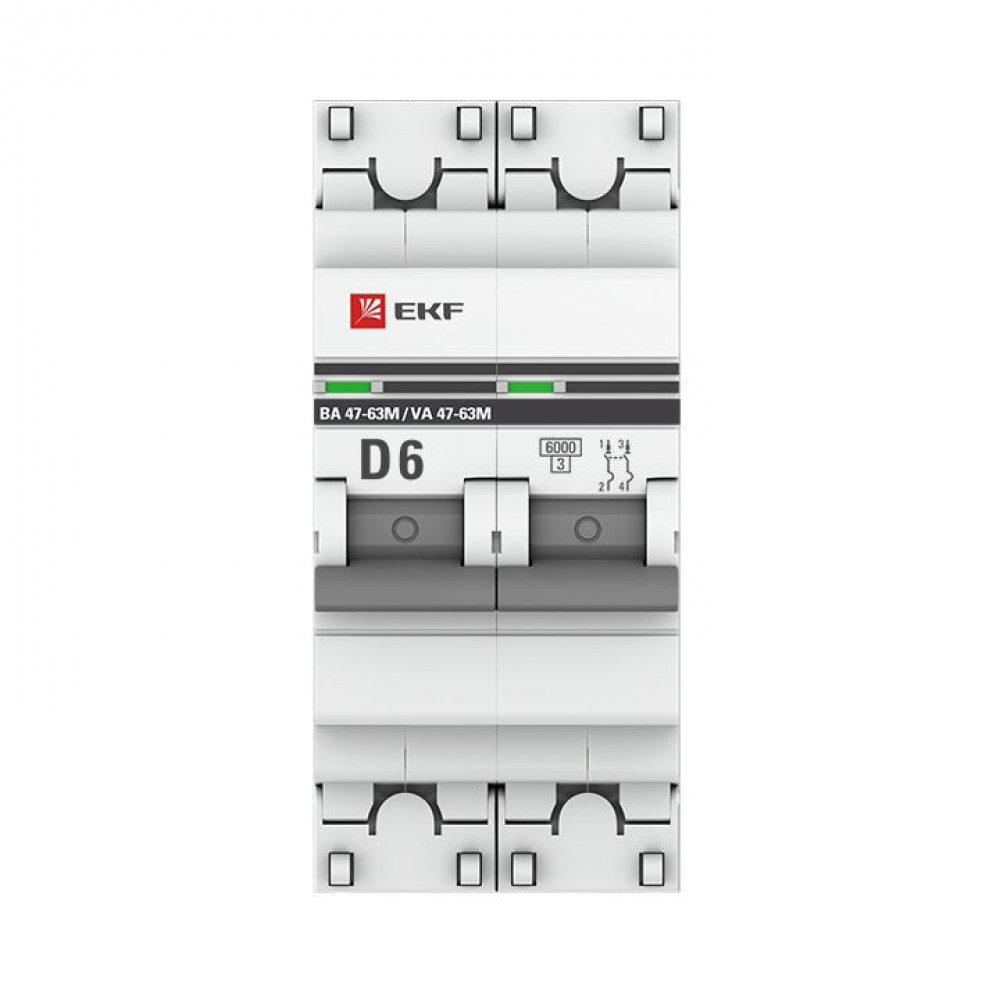 Описание Автоматический выключатель 2P 6А (D) 6кА ВА 47-63M без теплового расцепителя EKF PROxima