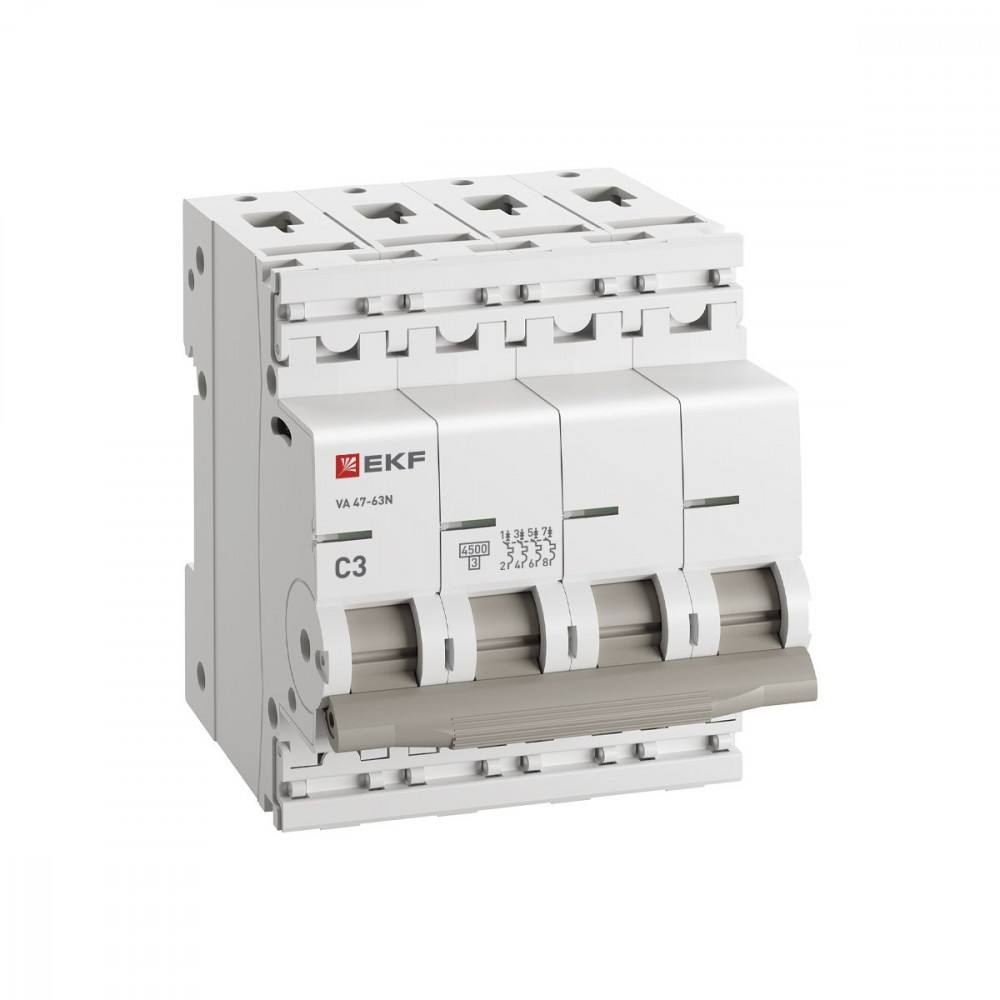 Автоматический выключатель ВА 47-63N 4P 3А (C) 4,5 кА PROXIMA EKF, Выключатель автоматический модульный