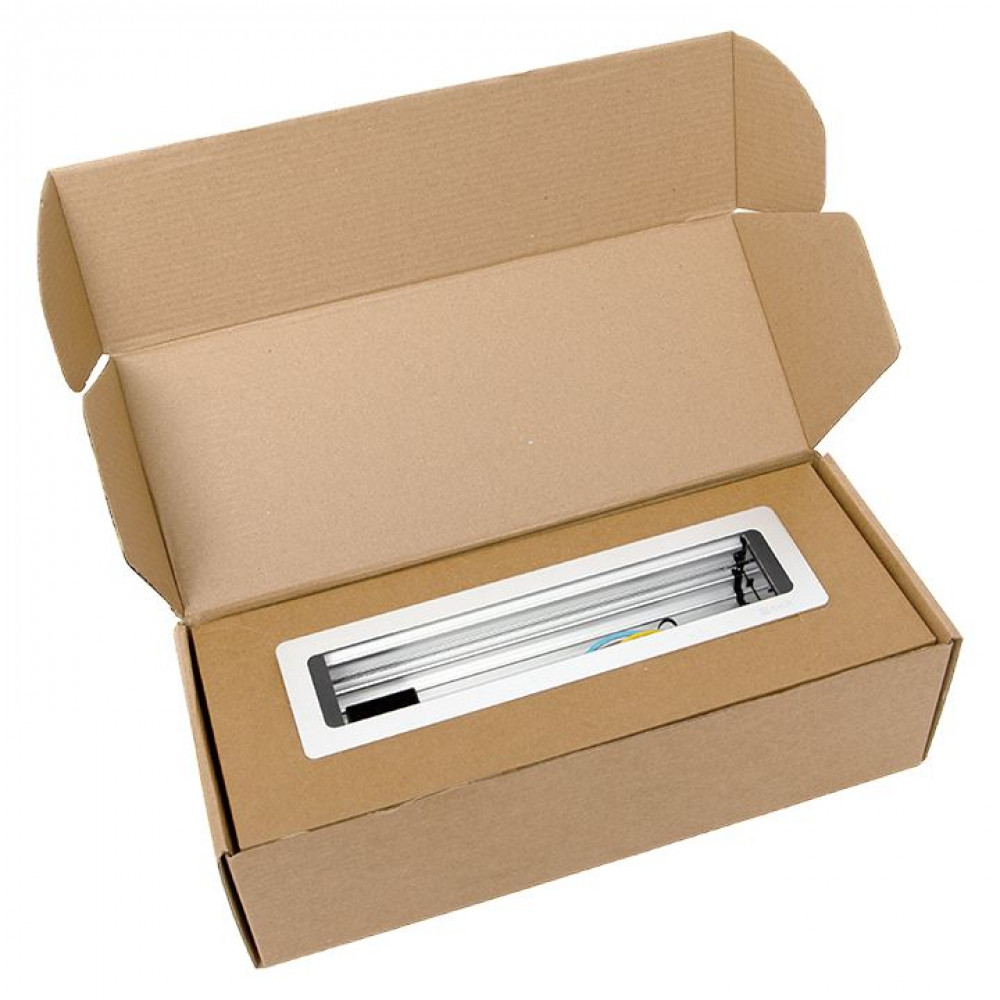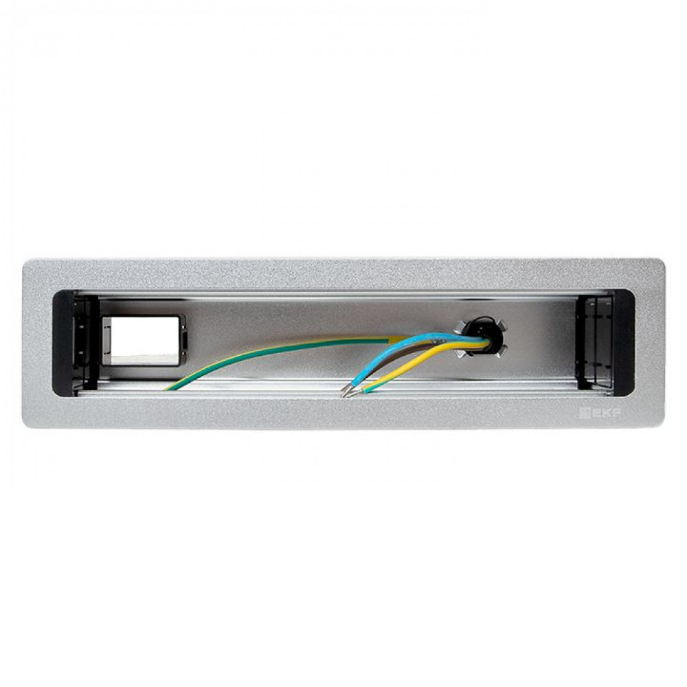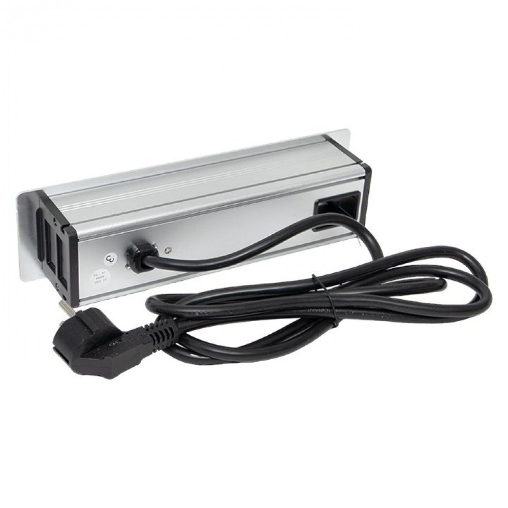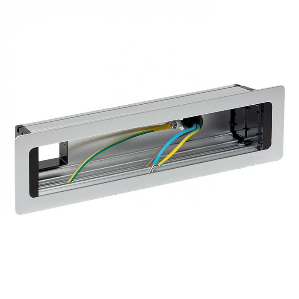 Встраиваемый настольный розеточный блок, 10 модулей, C-Line. Настольный розеточный блок – изделие прямоугольной формы, предназначенное для размещения ЭУИ на уровне поверхности стола. Розеточный блок монтируется в предварительно подготовленное отверстие 241х62 для 10 модулей. Сетевой кабель питания (2 метра) и крепеж в комплекте. На задней стенке розеточного блока предусмотрено дополнительное отверстие для подведения слаботочных кабельных линий.