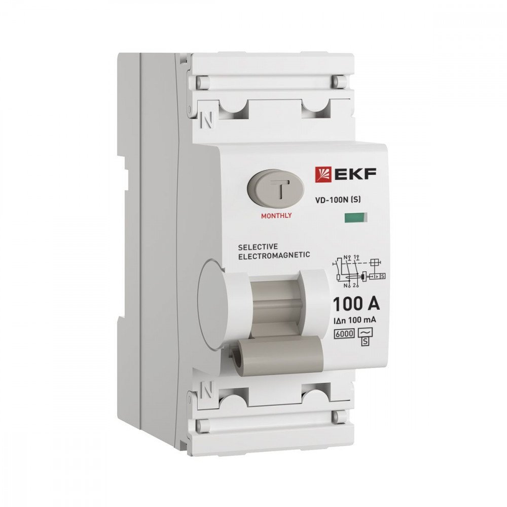 Выключатель дифференциального тока ВД-100N (S) 2P 100А 100мА тип AC эл-мех 6кА PROXIMA EKF, Дифференциальная защита: УЗО, дифф блок