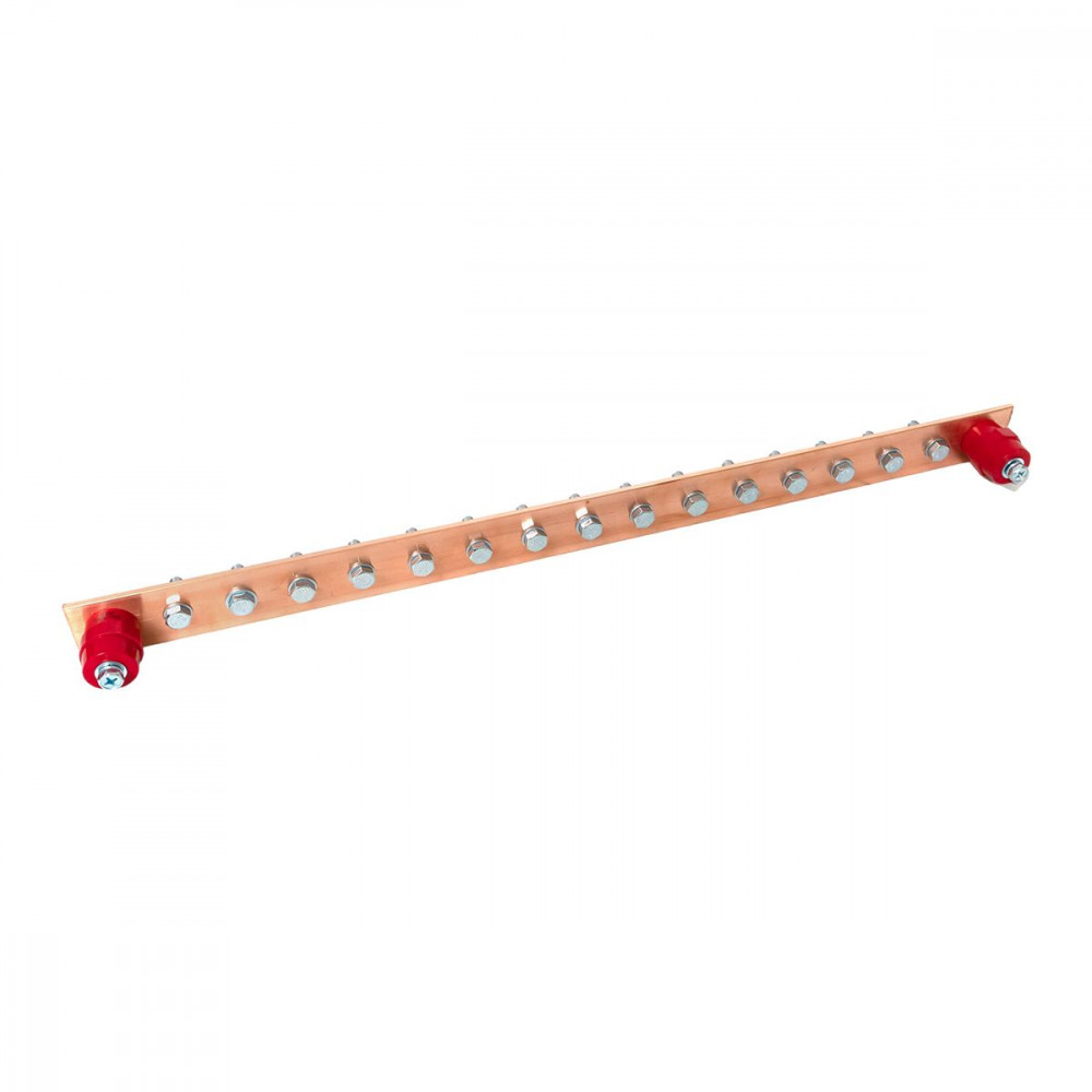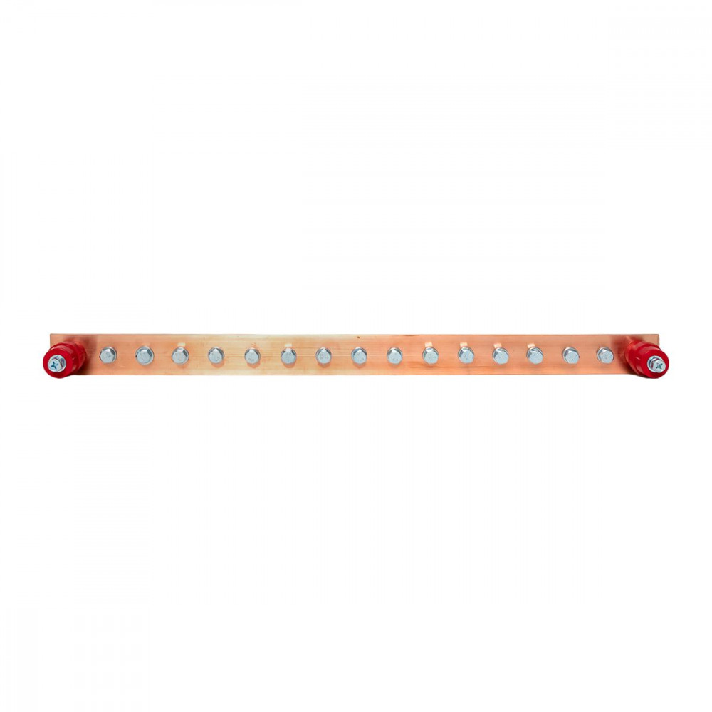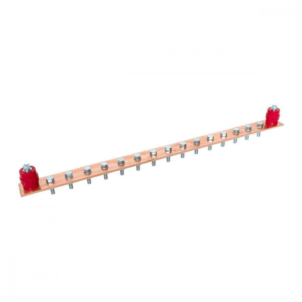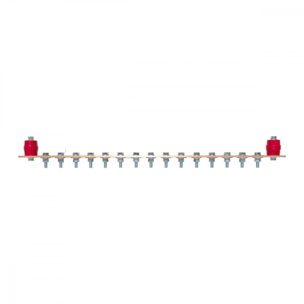 Главная заземляющая шина с изоляторами на 15 подключений ГЗШ-15 Сu EKF, Шина медная