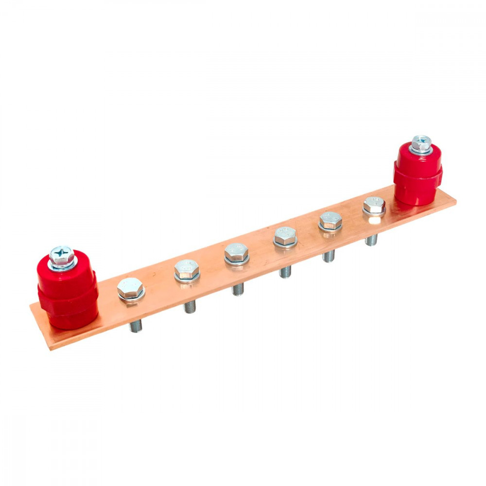 Главная заземляющая шина с изоляторами на 6 подключений ГЗШ-6 Сu EKF, Шина медная