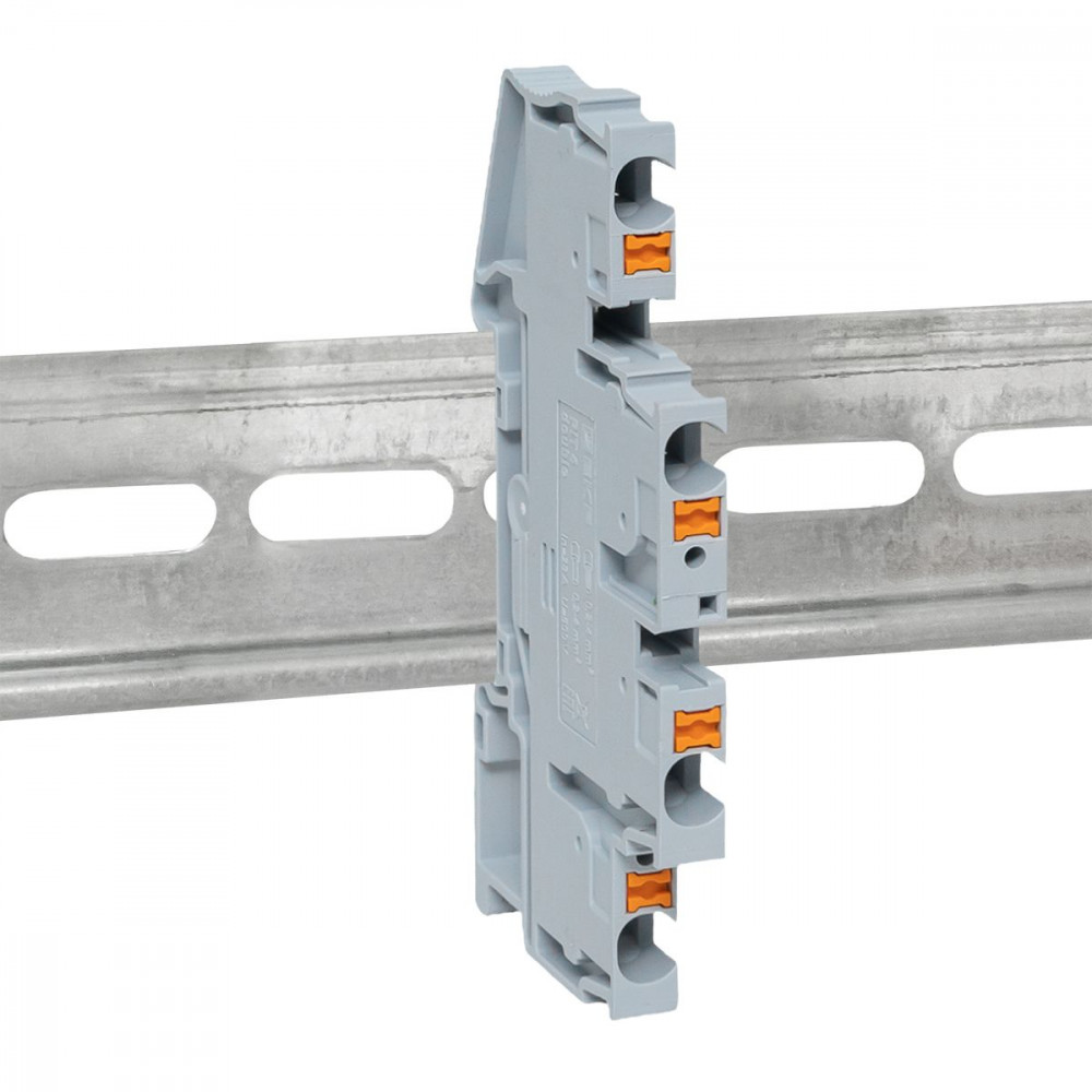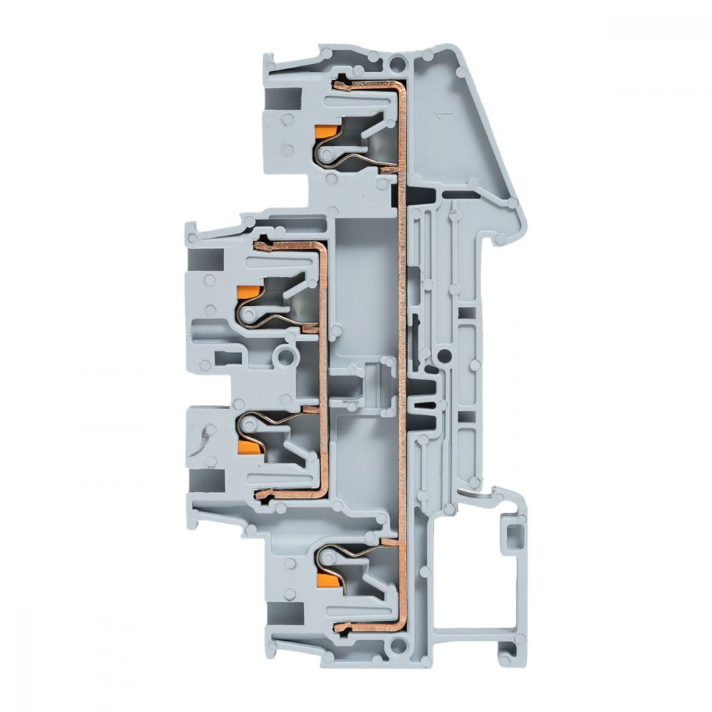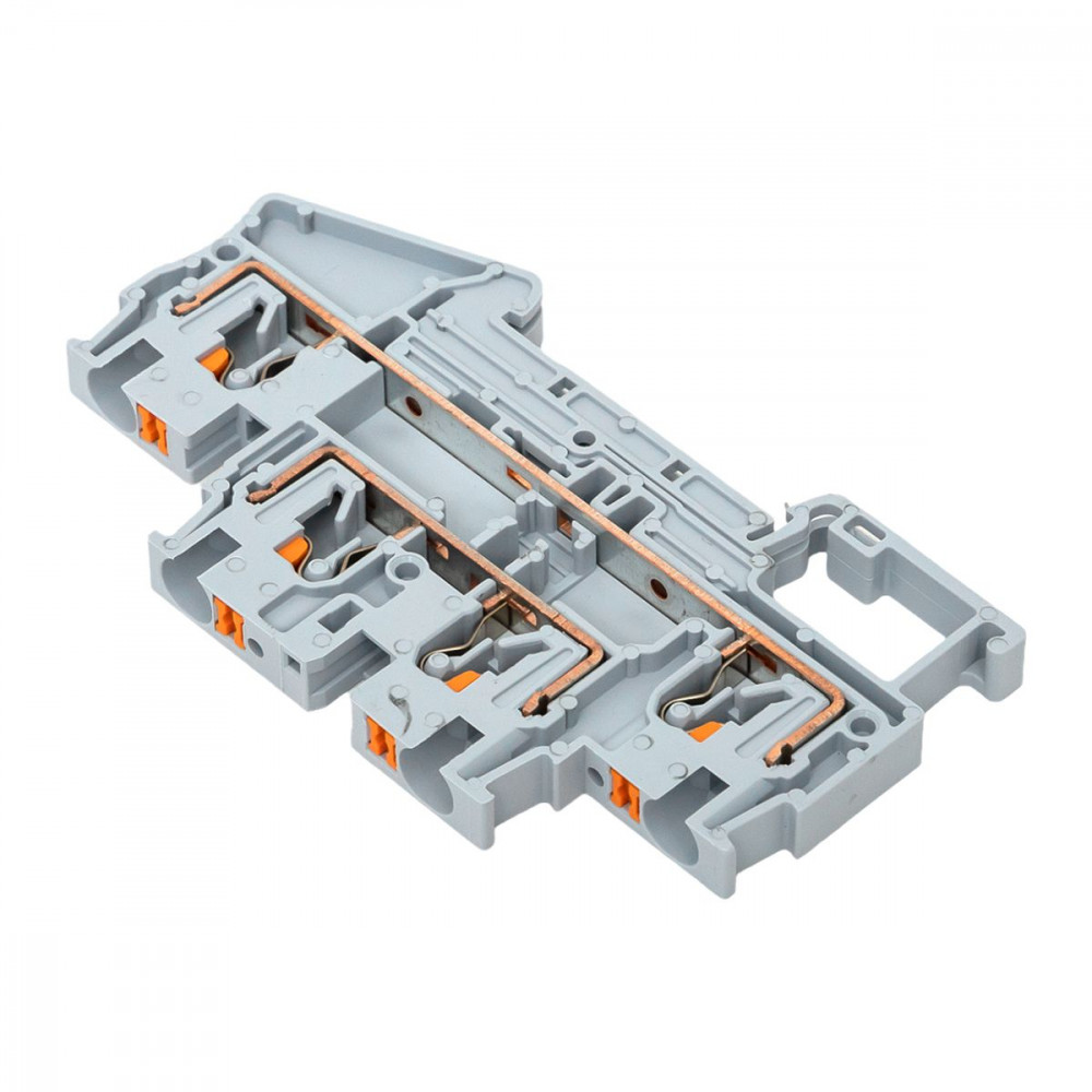 Клеммная колодка пружинная двухуровневая 4 Push-in серая, Клемма на DIN-рейку