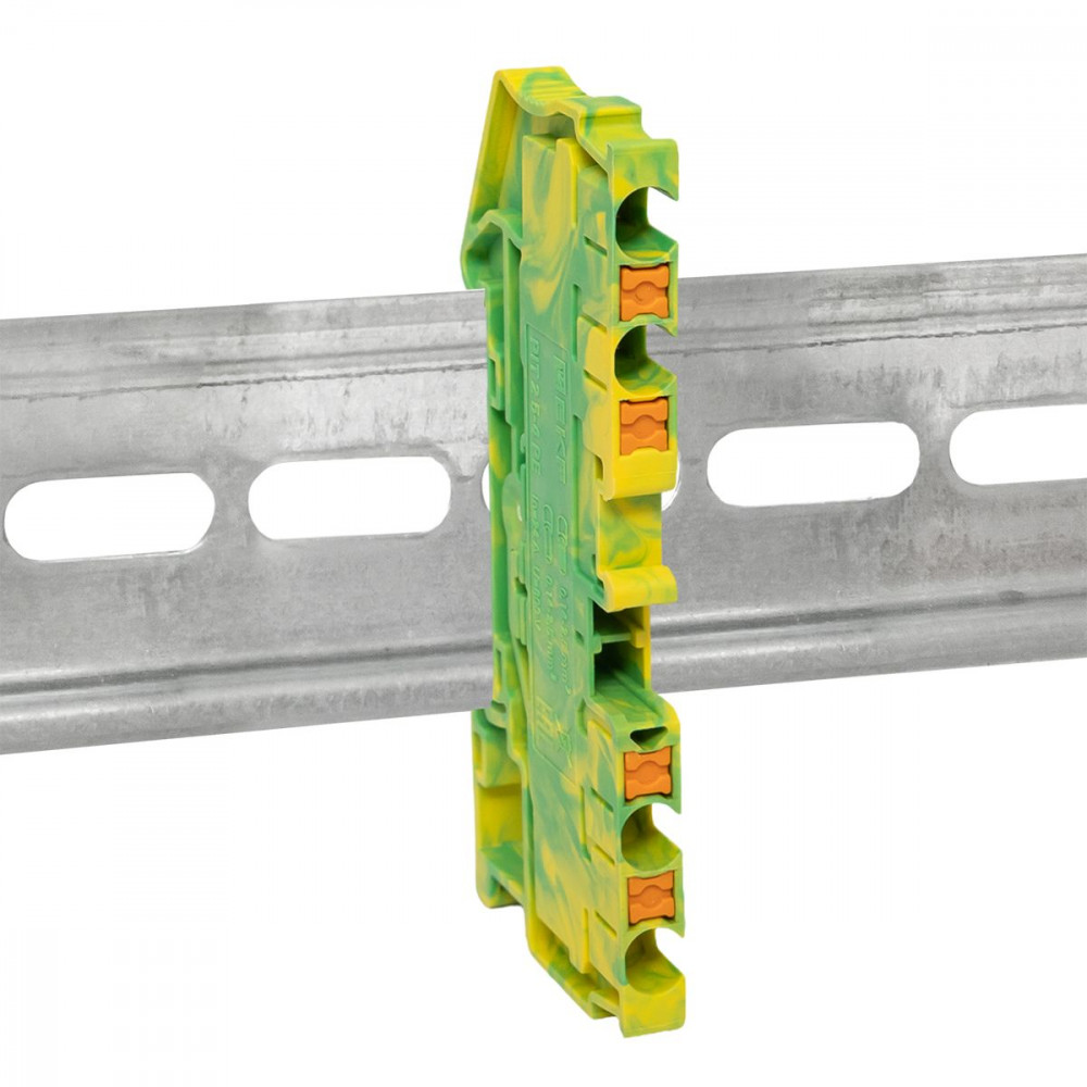 Клеммная колодка пружинная 2.5 Push-in 4 вывода земля, Клемма на DIN-рейку