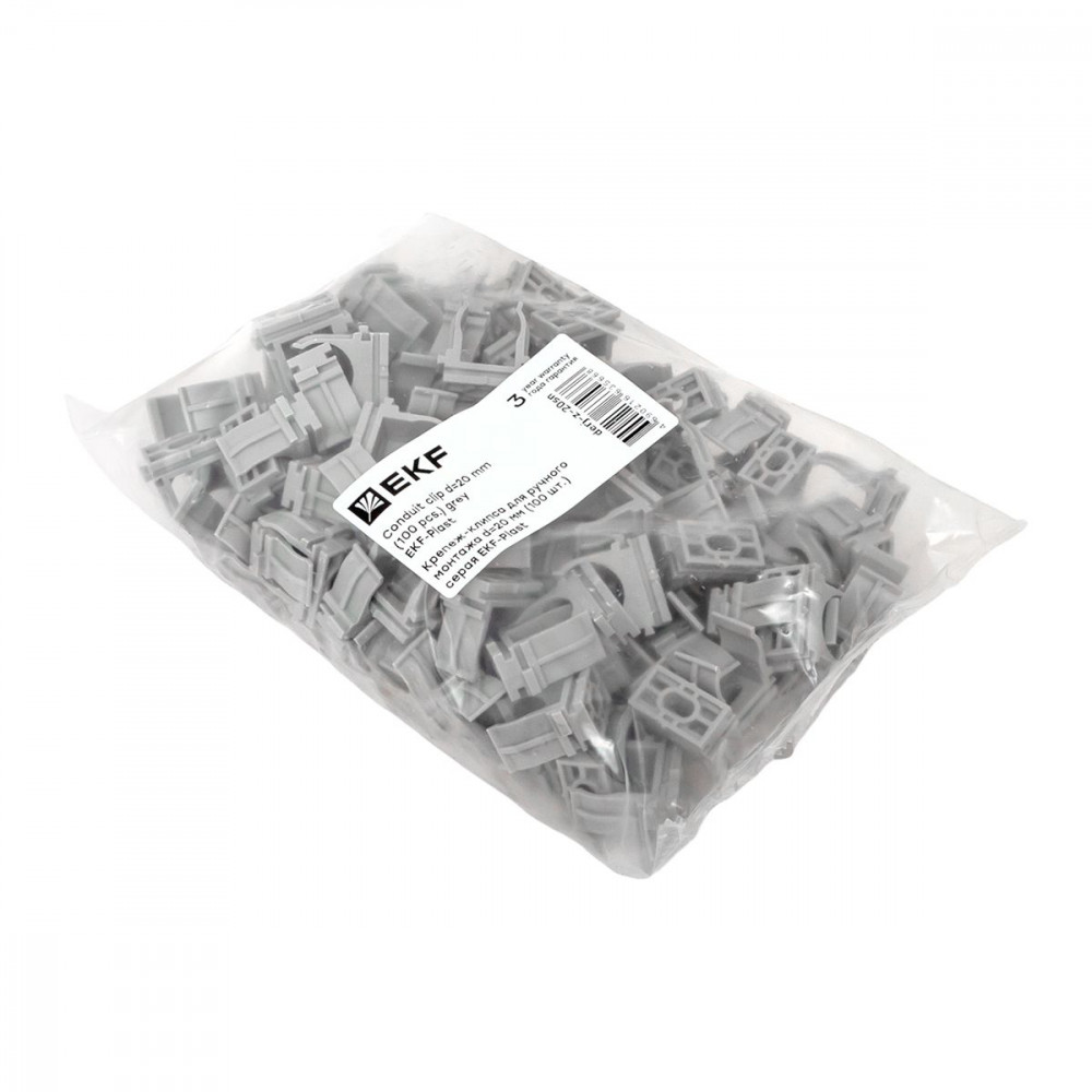 Описание Крепеж-клипса для ручного монтажа d20 мм (100 шт) серая EKF-Plast