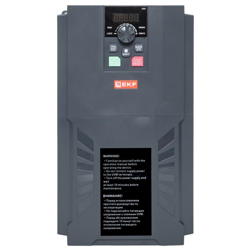 Преобразователь частоты PRO-Drive 150 EKF (далее преобразователь) предназначен для управления скоростью вращения электродвигателей, применяемых в широком спектре промышленного оборудования. Преобразователь обеспечивает точное поддержание скорости вращения или момента на валу двигателя в зависимости от внешних факторов. Преобразователи соответствуют требованиям ГОСТ IEC 61800-5-1, ГОСТ IEC 61800-3.