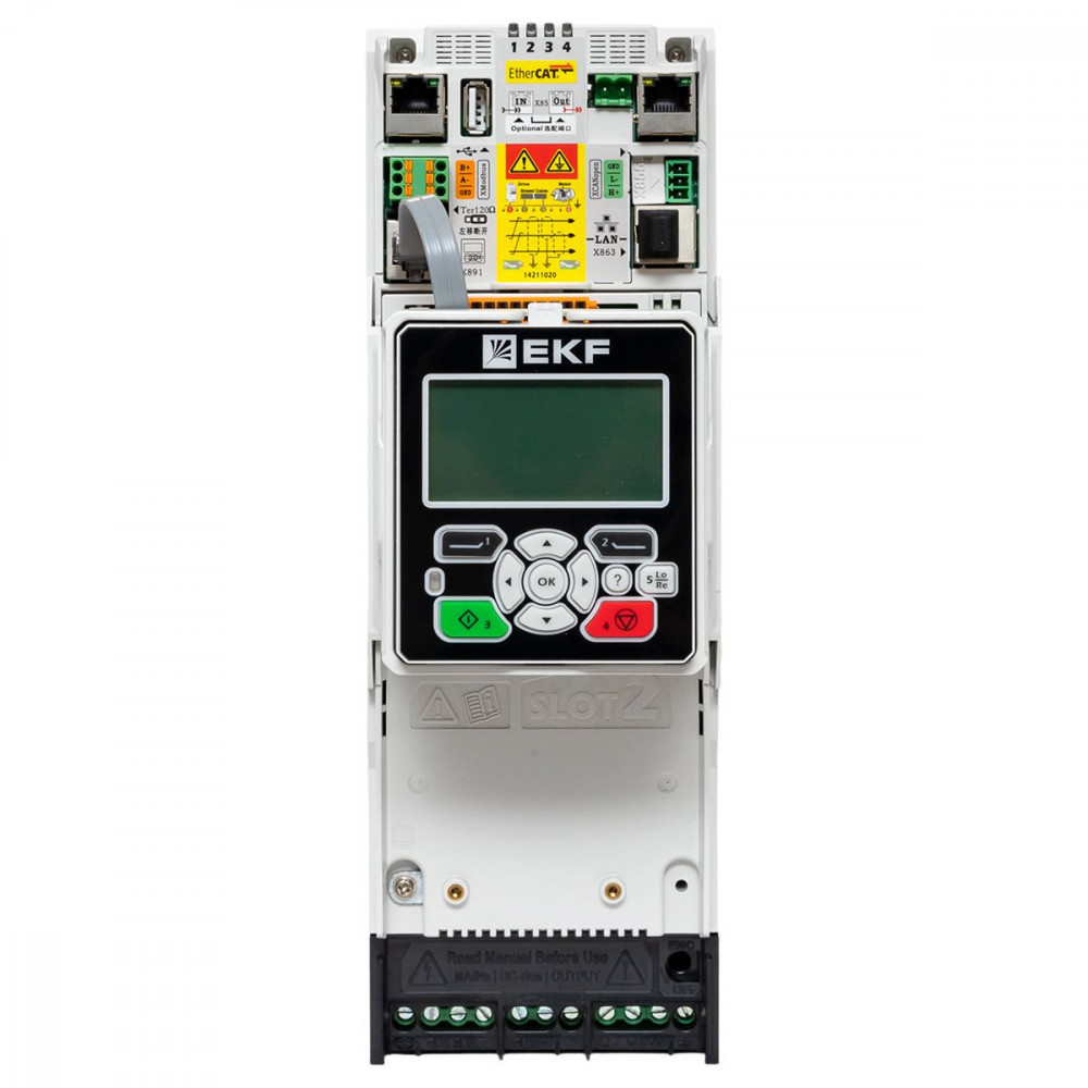 Преобразователь частоты PRO-Drive 500 EKF (далее преобразователь) предназначен для управления скоростью вращения электродвигателей, применяемых в широком спектре промышленного оборудования. Преобразователь обеспечивает точное поддержание скорости вращения или момента на валу двигателя в зависимости от внешних факторов. Преобразователи соответствуют требованиям ГОСТ IEC 61800-5-1, ГОСТ IEC 61800-3.