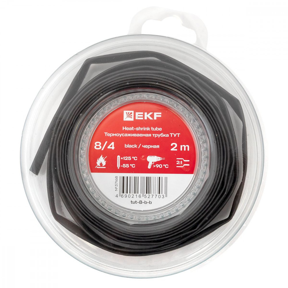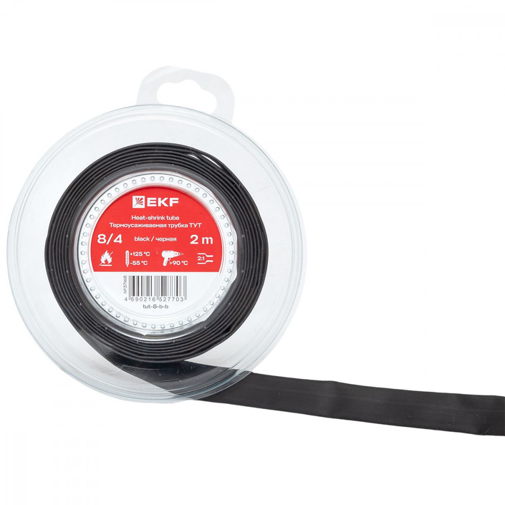Термоусаживаемая трубка ТУТ нг 8/4 черная ролик 2 м EKF, Изделие термоусаживаемое
