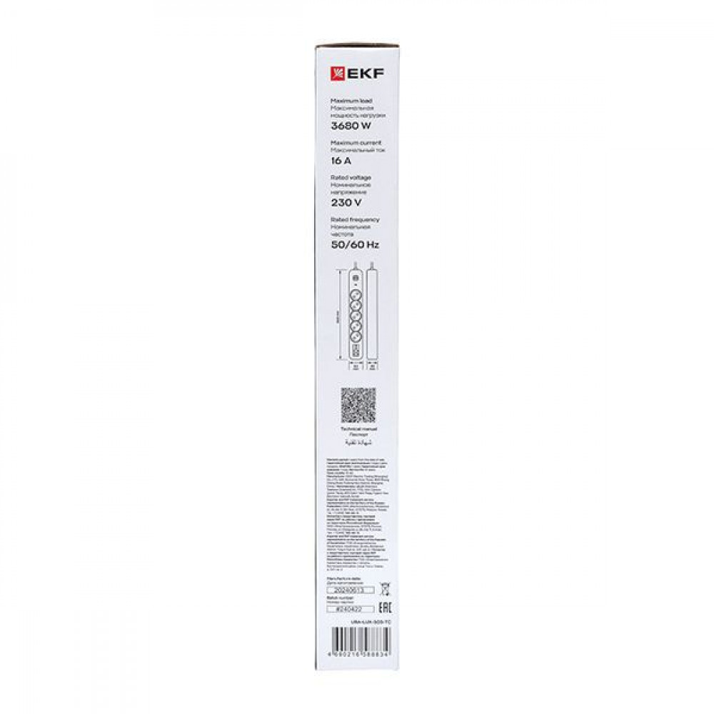 Удлинитель LUX 5 гнезд 2USB 2,4А+2type-C 5 метров 1,5мм2 EKF, Удлинитель, сетевой фильтр