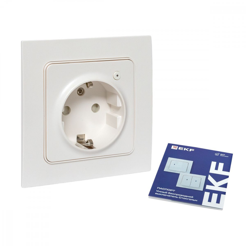 Описание Умная розетка Стокгольм 1-местная 16А белый Zigbee EKF Сonnect RCS-ST16-WD-ZB