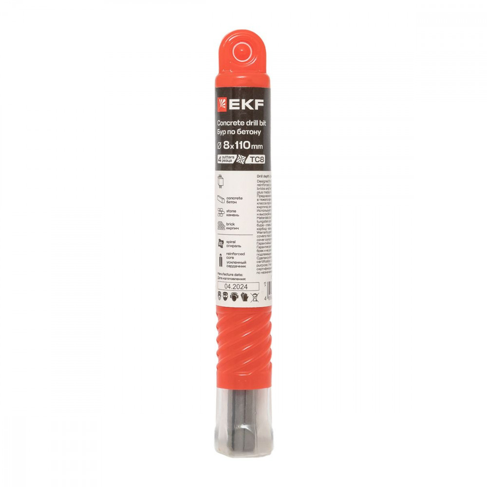 Описание Бур по бетону SDS-plus 8х110 мм (4 резца) EKF Professional