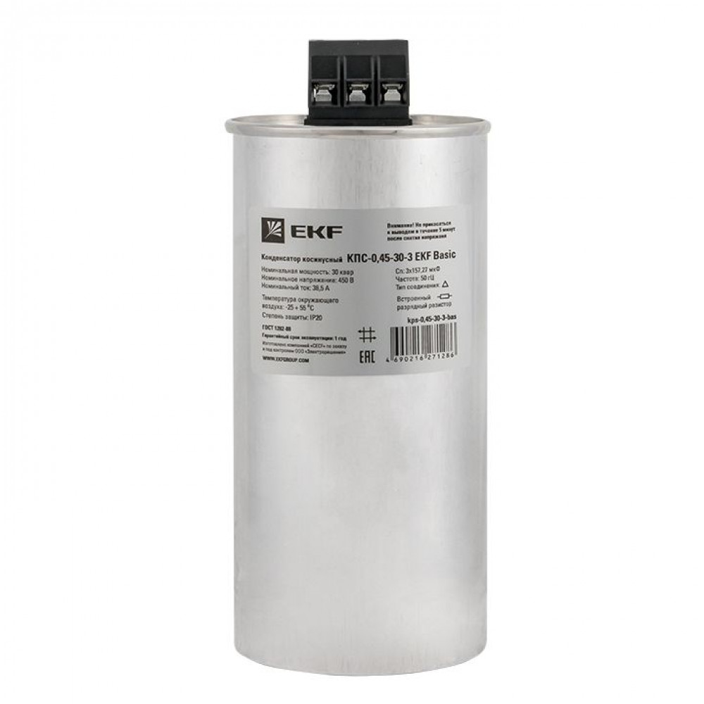 Описание Конденсатор косинусный КПС-0,45-30-3 EKF Basic
