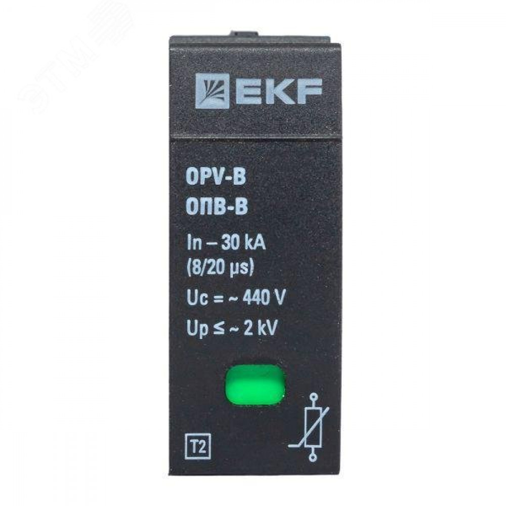 Сменный модуль к ОПВ EKF предназначен для замены вышедшего из строя варисторного модуля ОПВ. Сменный модуль представляет собой варистор, сопротивление которого изменяется в зависимости от приложенного напряжения: в нормальном состоянии ток через варистор предельно мал и сопротивление велико, а при возникновении перенапряжения сопротивление варистора мгновенно уменьшается на несколько порядков, соответственно, возрастает сила тока и происходит сброс импульсного перенапряжения.