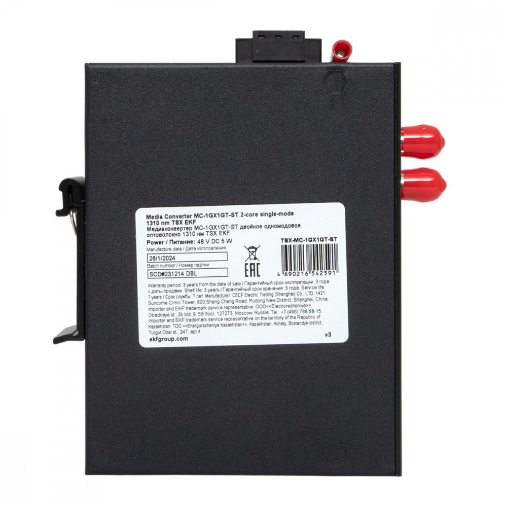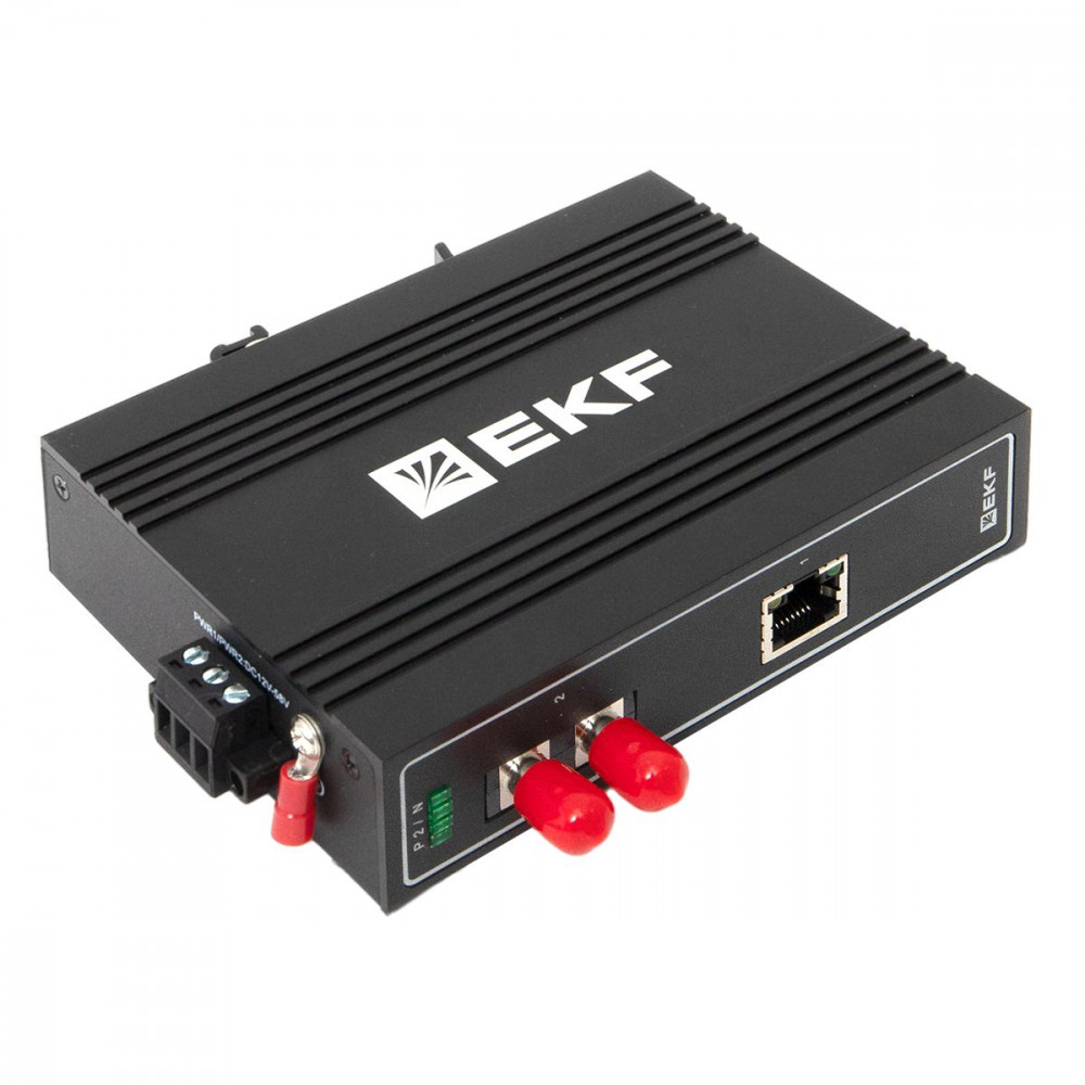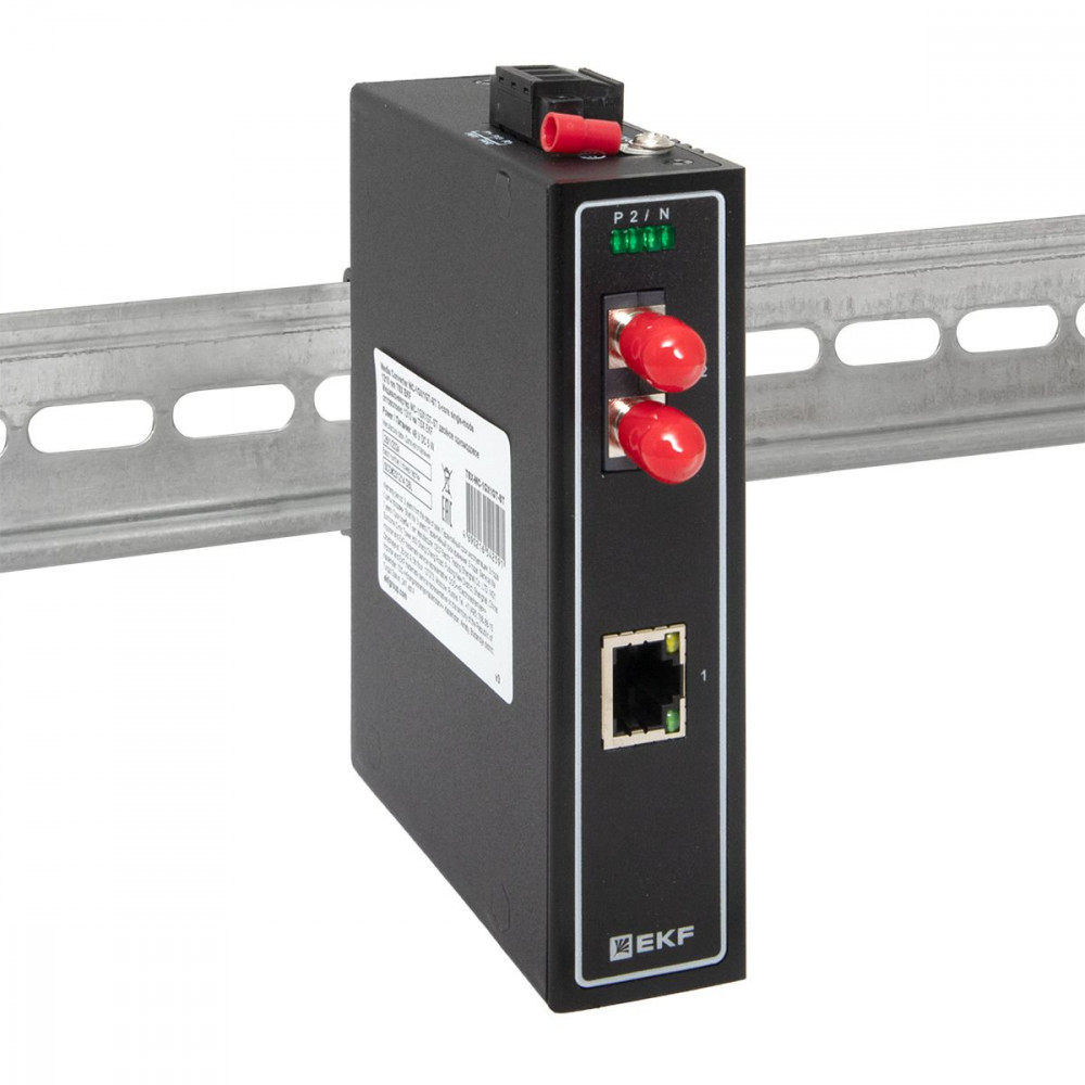 Медиаконвертер 10/100/1000Base-TX в 1000Base-X, разъем ST, двойное одномодовое оптоволокно, 1550нм TSX EKF [TSX-MC1-1GX1GT-ST] →