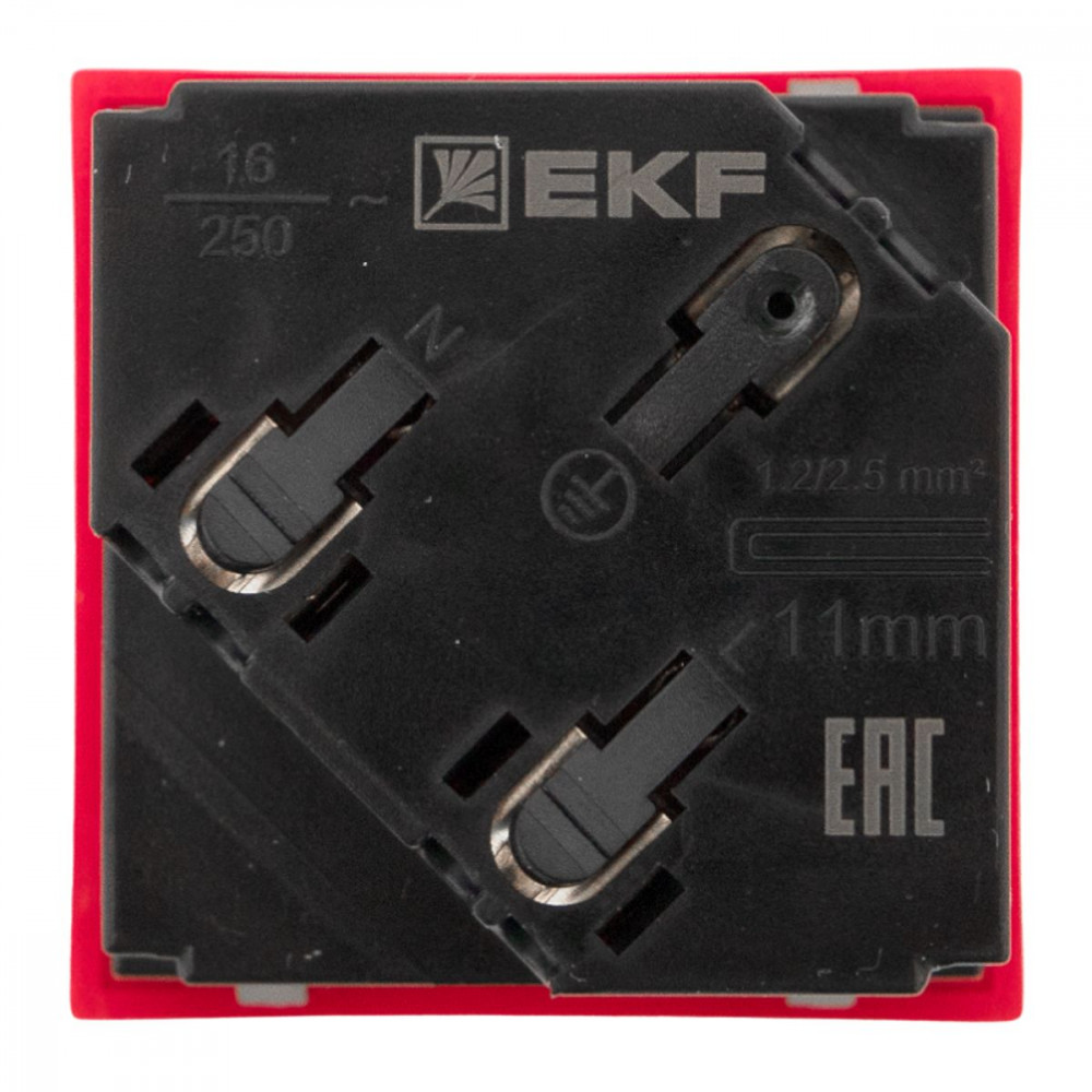 Описание Розетка 45х45 с зазем. 45 градусов, быстрозажимные клеммы, красная EKF