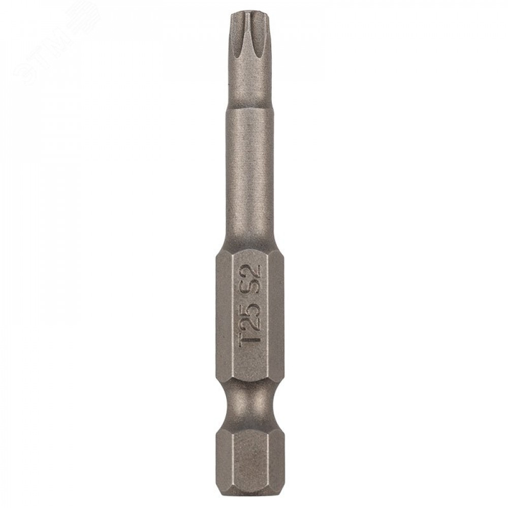 Бита Torx T-25х50 мм (насадка) для закручивания крепежа (шурупы, винты). Произведена из стали S2 и закалена до оптимальной твердости, чем обусловлен высокий ресурс. Шестигранный хвостовик (Е6,3) обеспечивает быструю и надежную фиксацию в шуруповертах. Также используется с отверткой для бит.