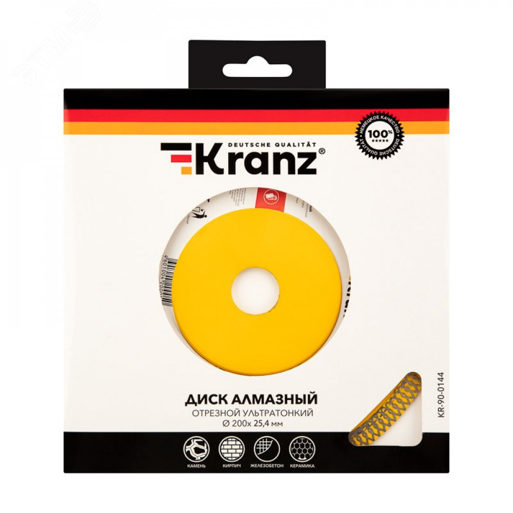 Диск алмазный отрезной ультратонкий 200x22.2/25,4 KRANZ предназначен для сухой и мокрой резки строительных материалов, таких как гранит, керамогранит, песчаник, клинкер, мрамор, керамика. Используется в угловой шлифовальной машине, ручном электрическом плиткорезе. Материал изделия - инструментальная сталь, синтетический алмаз. Процесс резки сопровождается воздушным охлаждением. Срок годности не ограничен. Хранить в сухом прохладном месте. Использовать строго по назначению. Внимание! Запрещается использовать диск для разрезания металлов. При установке диска руководствуйтесь стрелкой направления вращения диска. Используйте средства индивидуальной защиты. Не утилизировать с бытовыми отходами.
