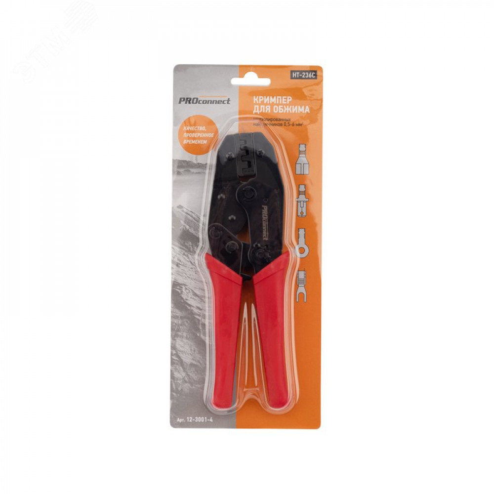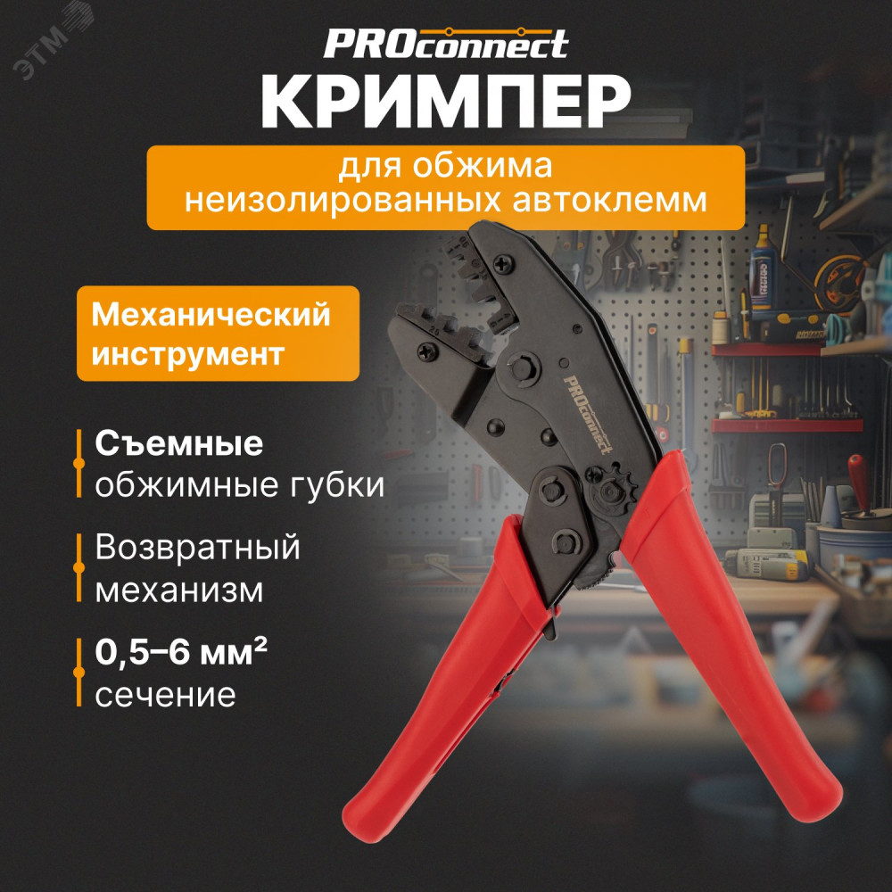 Кримпер PROconnect HT-236C для обжима автоклемм неизолированных 0.5-6.0 кв мм 12-3001-4, Инструмент для обжима