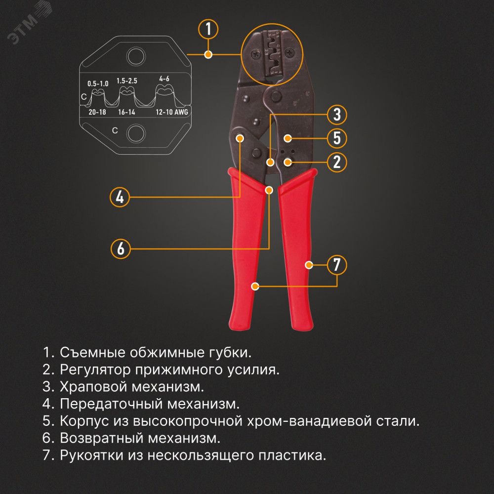 Описание Кримпер PROconnect HT-236C для обжима автоклемм неизолированных 0.5-6.0 кв мм 12-3001-4