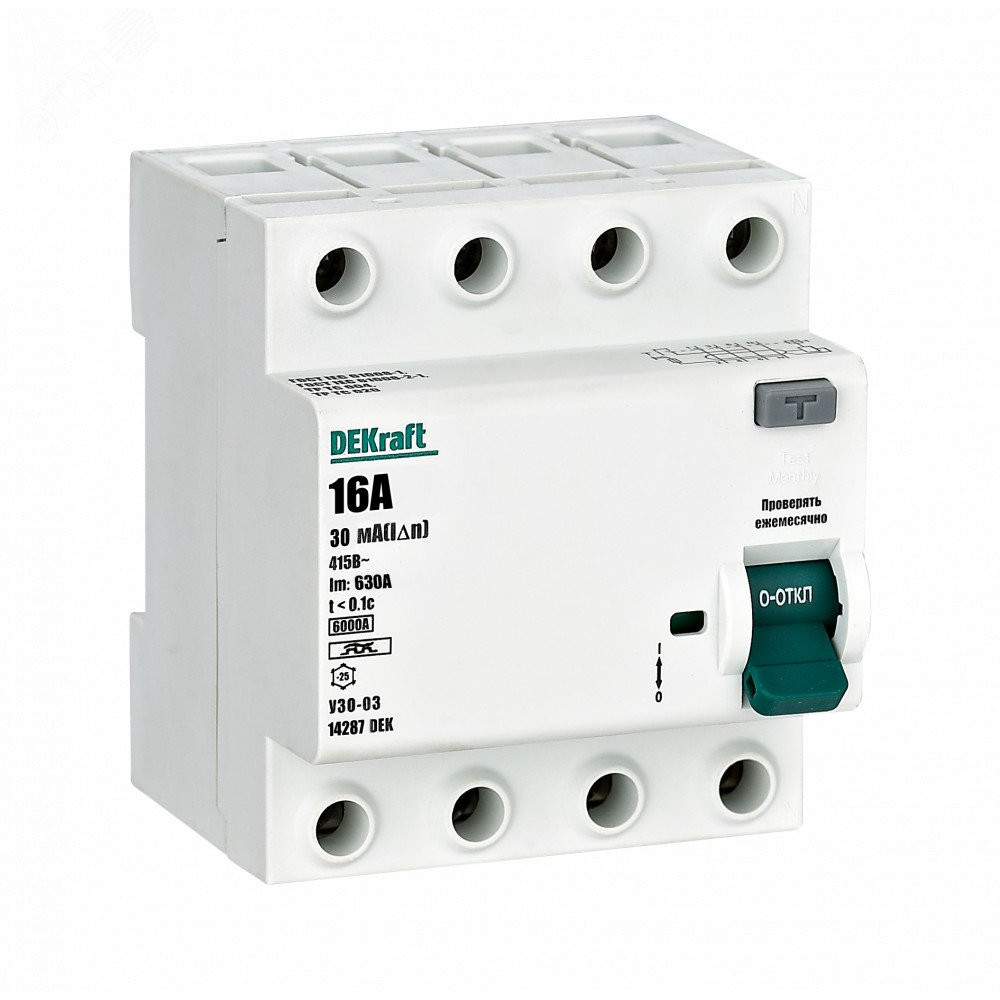 Выключатель дифференциального тока УЗО 03-6кА-4P-016А-030-A 14287DEK, Дифференциальная защита: УЗО, дифф блок