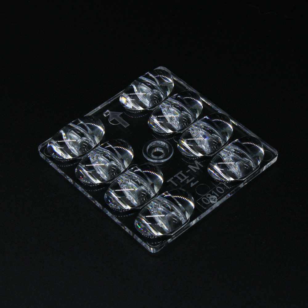 Групповая квадратная линза на 8 светодиодов 5050/3535/3030 , диаграмма T2M-cutoff, PC, 50x50мм H:6.62мм