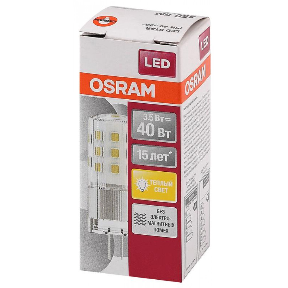 Лампа светодиодная LED 3,5Вт G4 12V STAR PIN40 (замена 40Вт), теплый, прозр. Osram 4058075369009, Лампа светодиодная