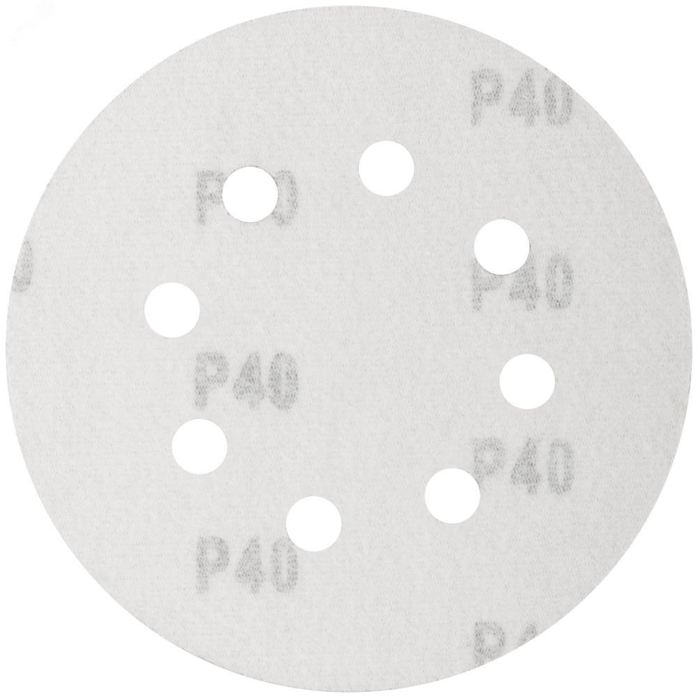 Круги шлифовальные с отверстиями (липучка), алюминий-оксидные, 125 мм, 5 шт Р 40 39662