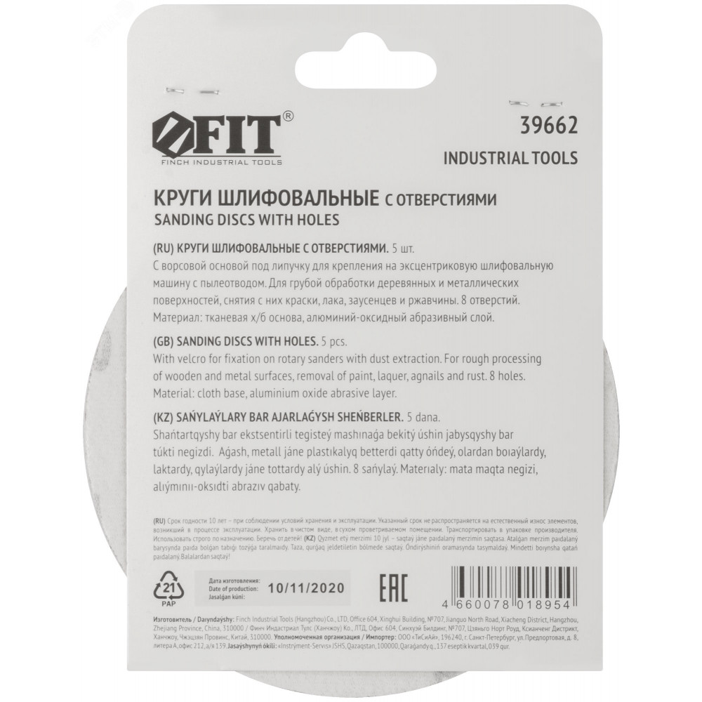 Круги шлифовальные FIT IT с липучкой предназначены для обработки плоских поверхностей. Отверстия в кругах обеспечивают эффективный пылеотвод. Система крепления ''велкро'' обеспечивает быструю установку и снятие кругов. Пять кругов в комплекте позволят выполнить большой объем работ. Хлопчатобумажная основа кругов обладает высокой прочностью и эластичностью.