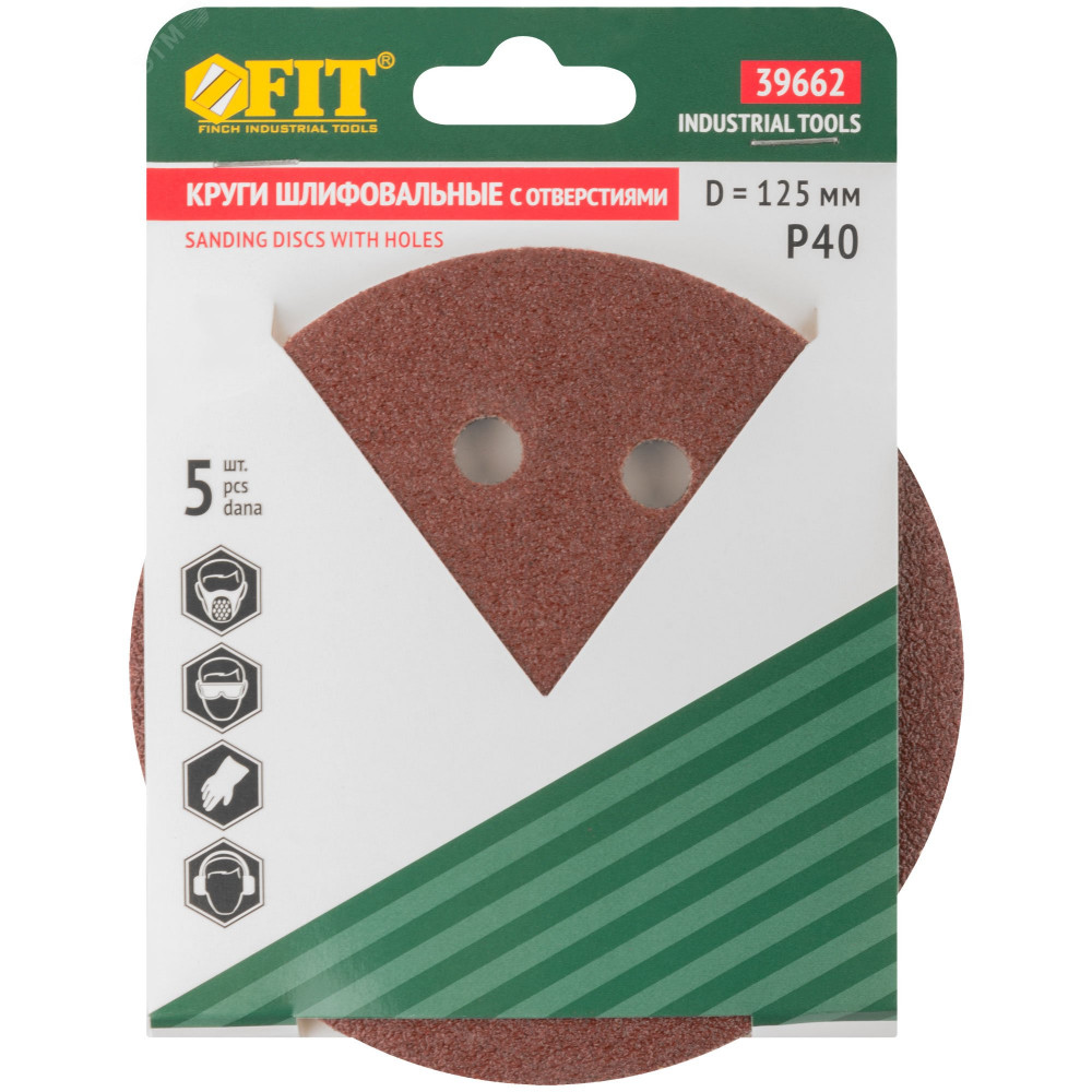 Описание Круги шлифовальные с отверстиями (липучка), алюминий-оксидные, 125 мм, 5 шт Р 40 39662