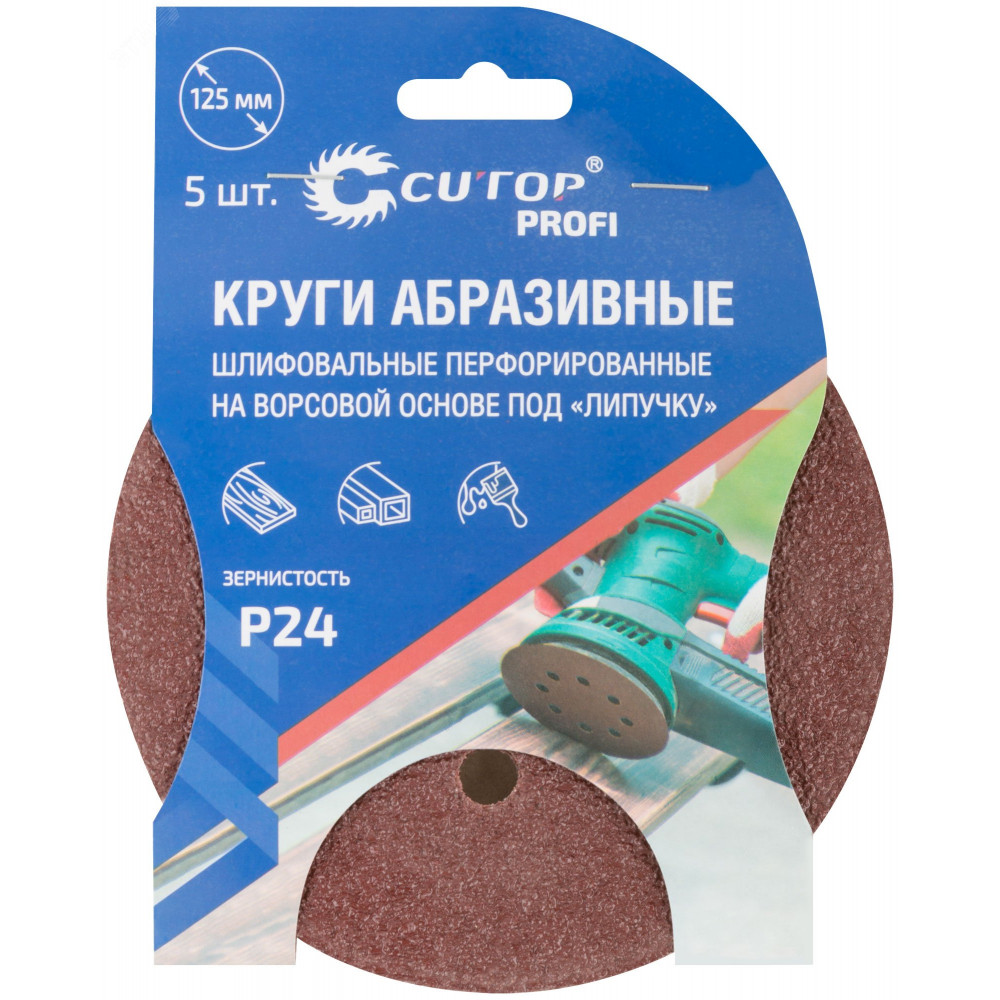 Описание Круги абразивные шлифовальные перфорированные на ворсовой основе под ""липучку"" (Р24, 125 мм, 5шт), Profi 85-615