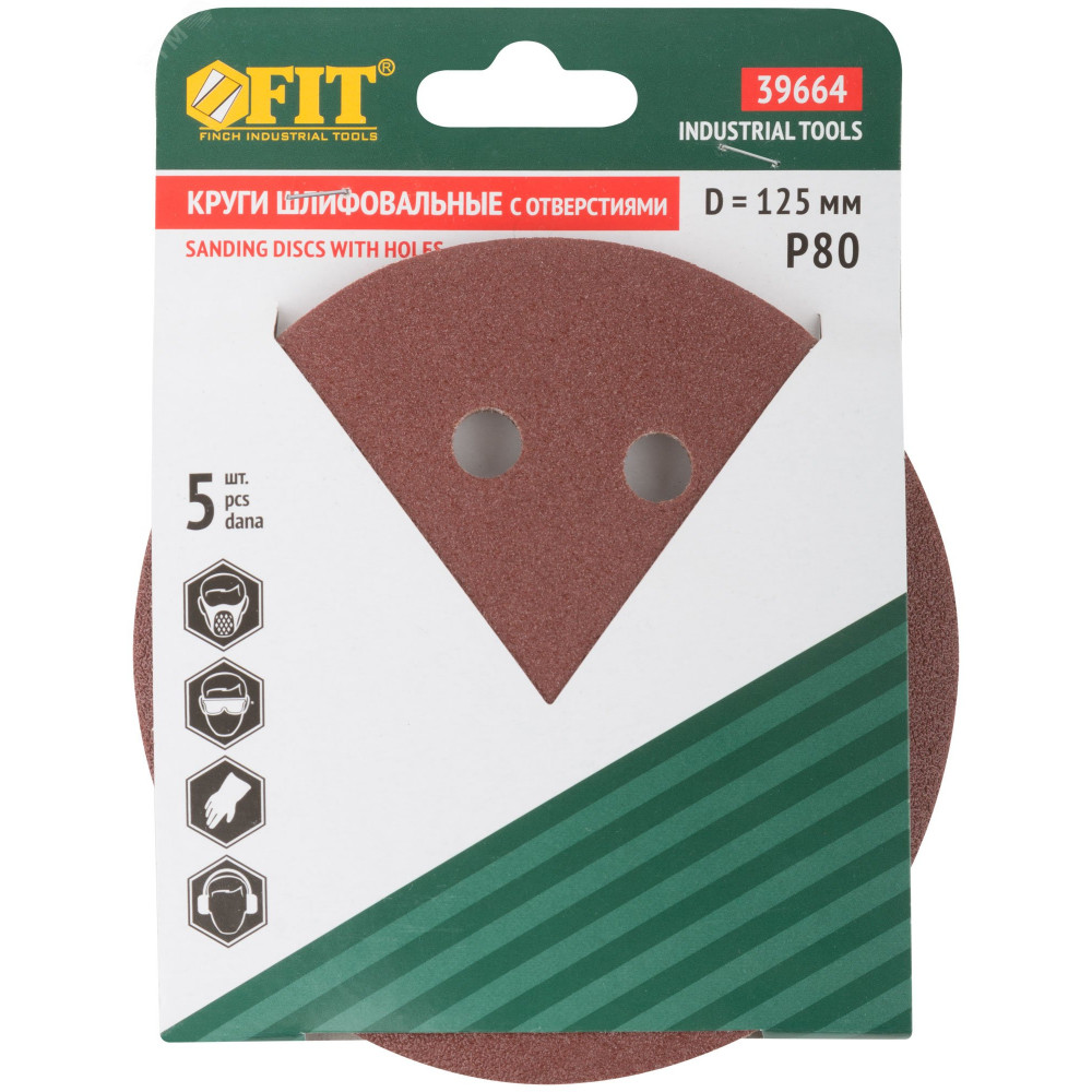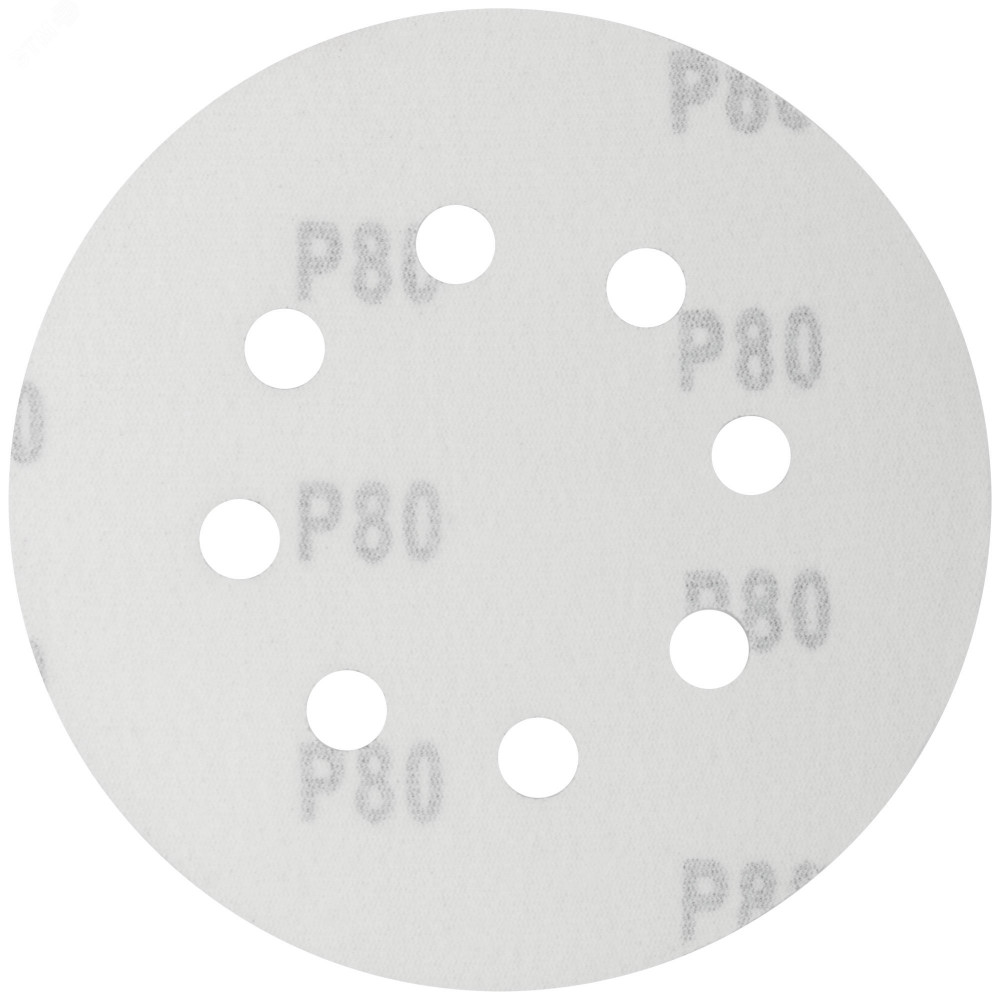 Круги шлифовальные с отверстиями (липучка), алюминий-оксидные, 125 мм, 5 шт Р 80 39664