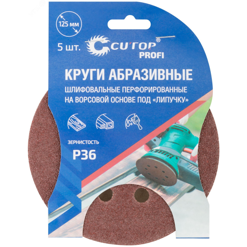 Описание Круги абразивные шлифовальные перфорированные на ворсовой основе под ""липучку"" (Р36, 125 мм, 5шт), Profi 85-616