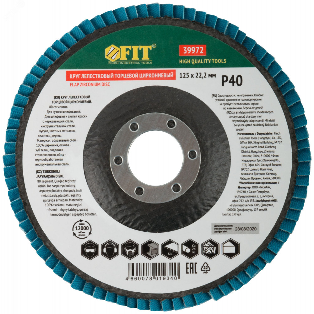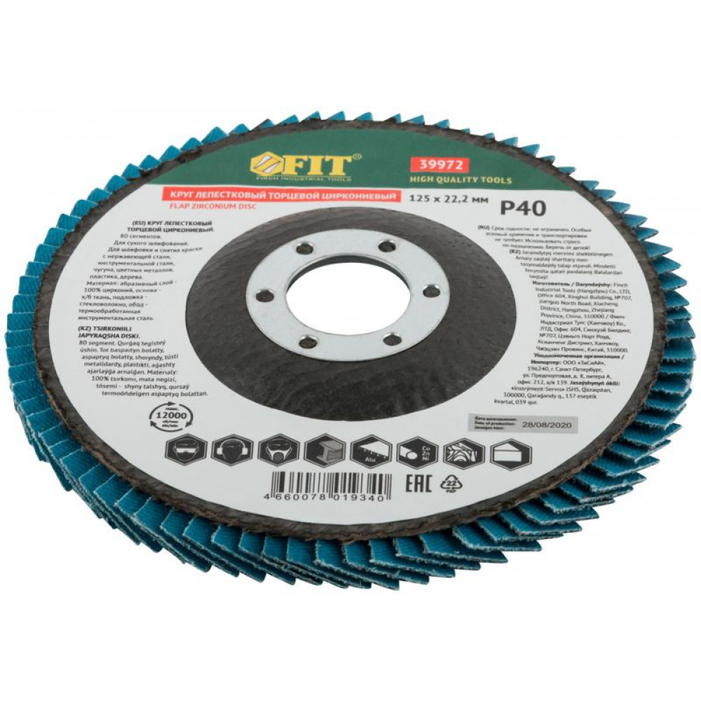 Описание Круг лепестковый торцевой циркониевый плоский, 125 мм P 40 39972