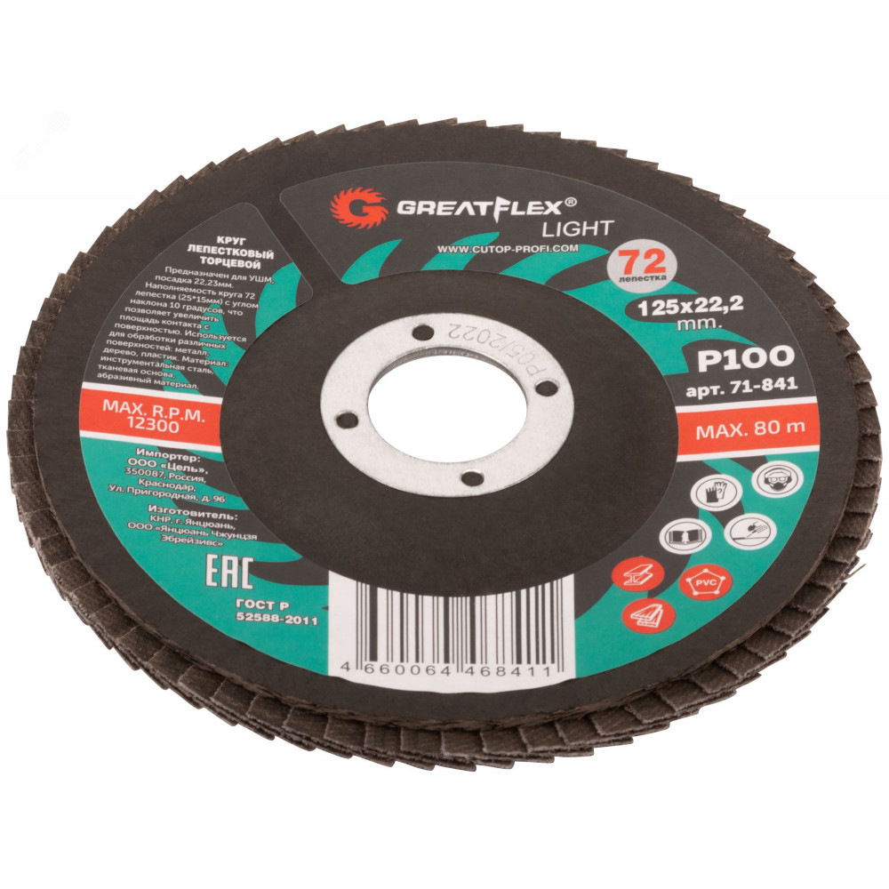Круг лепестковый торцевой GreatFlex Light (72 лепестка): 125 х 22,2 мм, P100 71-841