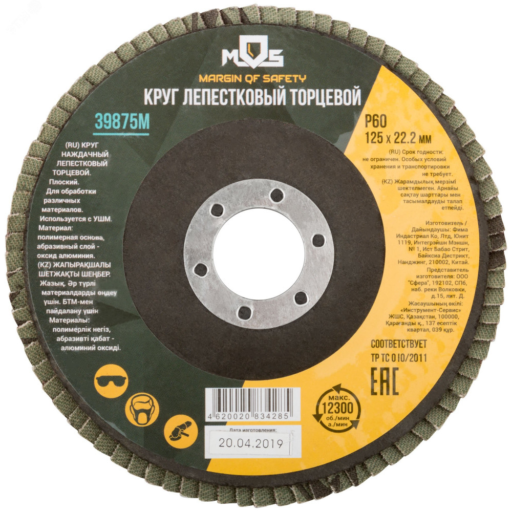 Круг лепестковый торцевой плоский 125 мм P 60 39875М