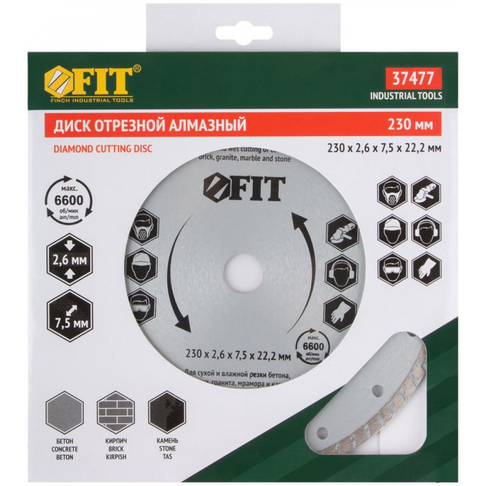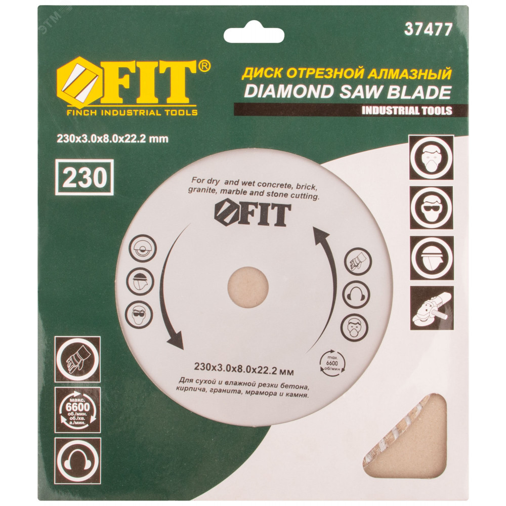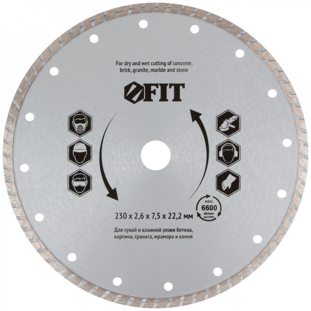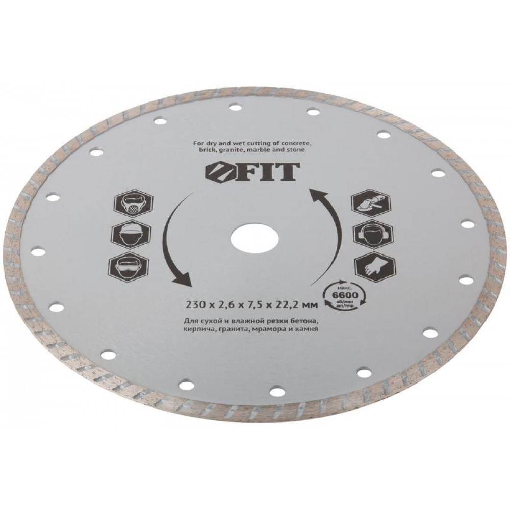 Описание Диск отрезной алмазный ""турбо"" (сухая и влажная резка) 230х2.8х7.5х22.2 мм 37477