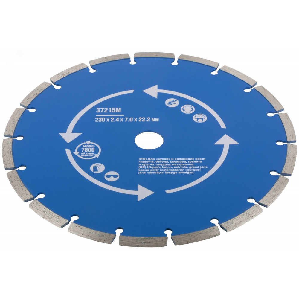 Описание Диск отрезной алмазный сегментный (сухая и влажная резка) 230х2.4х7.0х22.2 мм 37215М