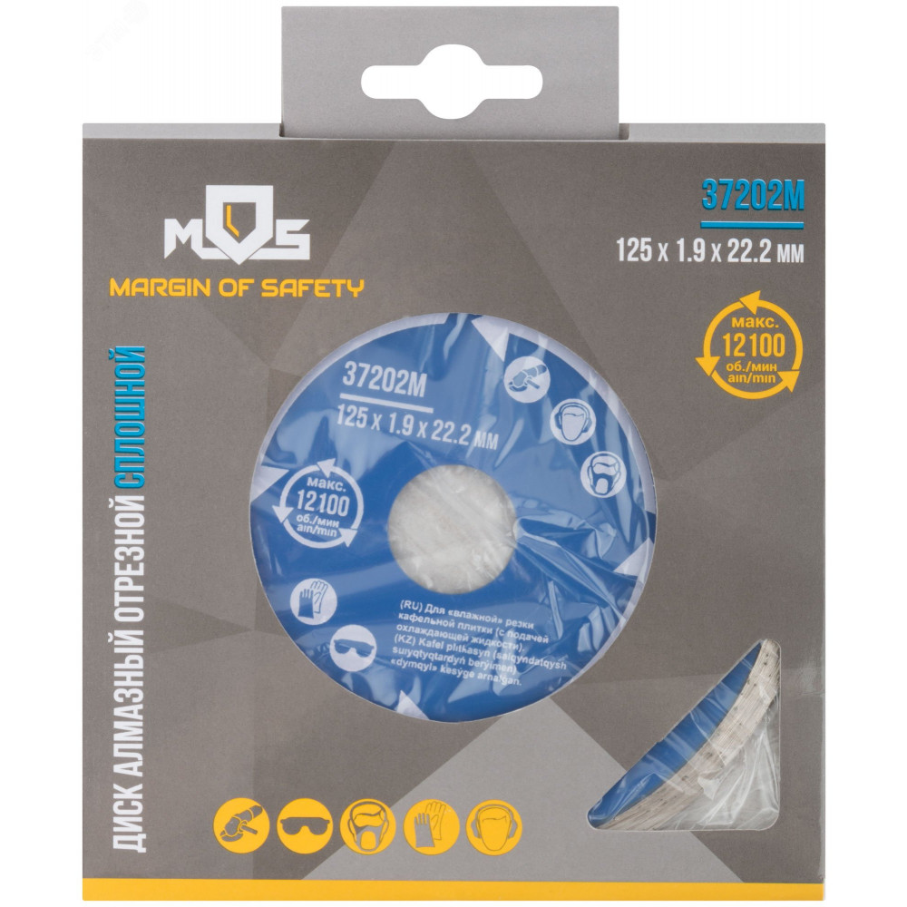Диск отрезной алмазный сплошной (влажная резка), для работы с кафелем, 125х1.9х5.0х22.2 мм 37202М