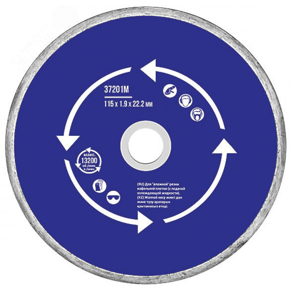Описание Диск отрезной алмазный сплошной (влажная резка), для работы с кафелем, 125х1.9х5.0х22.2 мм 37202М