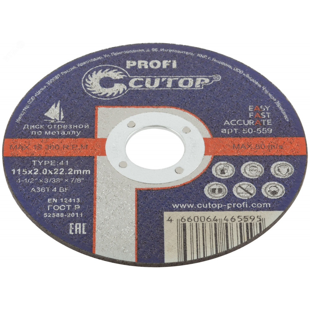 Описание Диск отрезной по металлу Т41-115х2.0х22.2 50-559