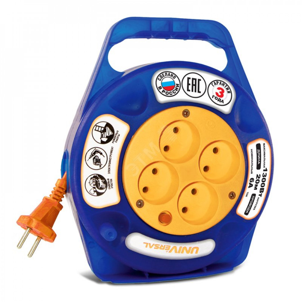 Удлинитель силовой 4х20м ПВС 2х0.75 6А У6-015т 9633902, Удлинитель, сетевой фильтр