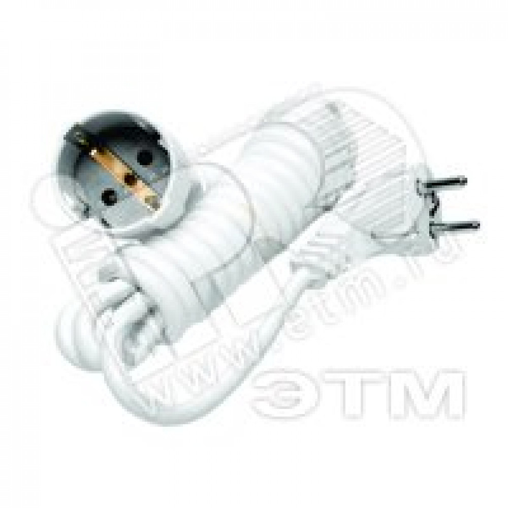 Самый простой тип удлинителей. Представляет собой провод ПВС, армированный с одной стороны неразборной литой вилкой, с другой – штепсельной розеткой. Цвет провода, вилки и розетки белый.