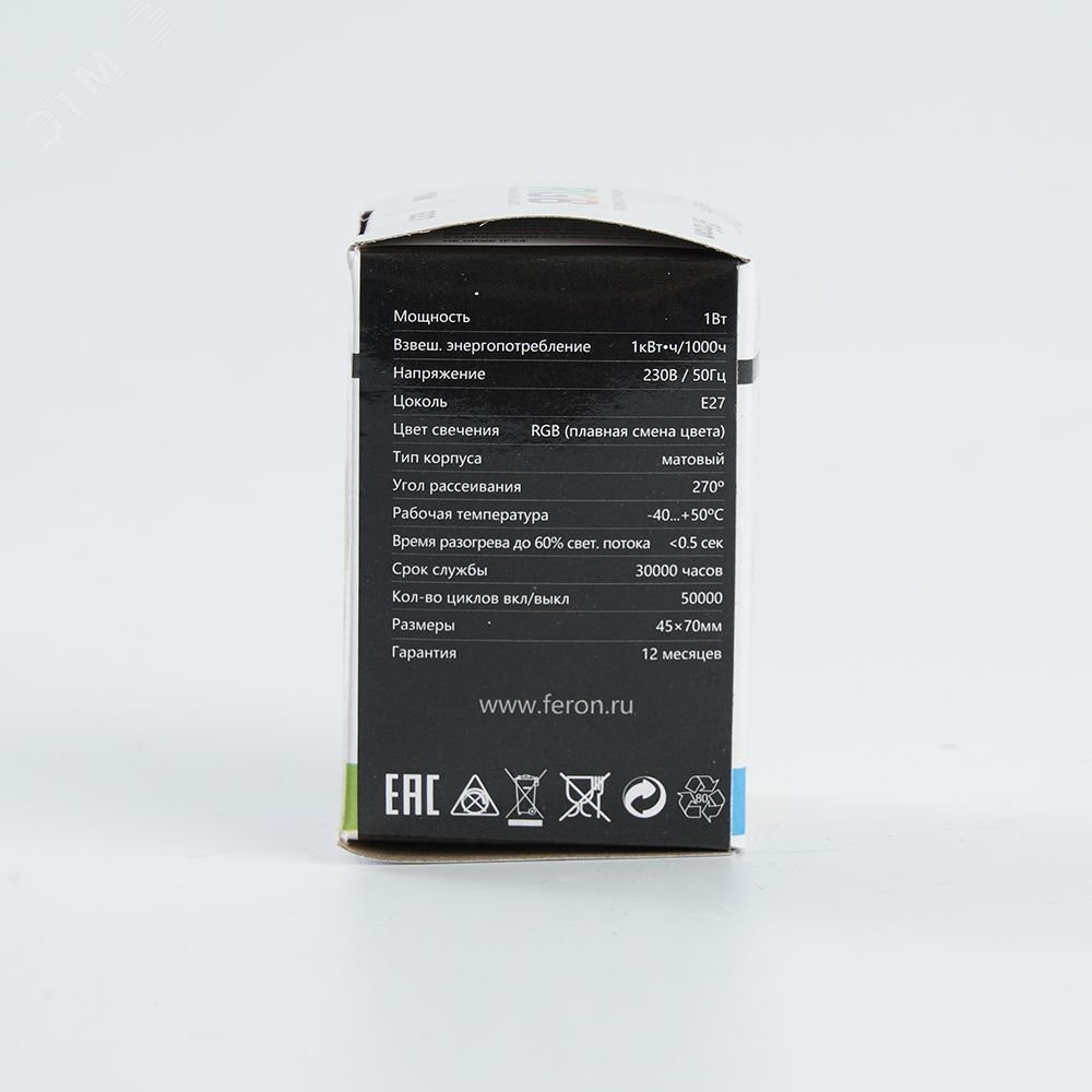 Описание Лампа светодиодная LED 1вт Е27 RGB плавная смена цвета шар 38116