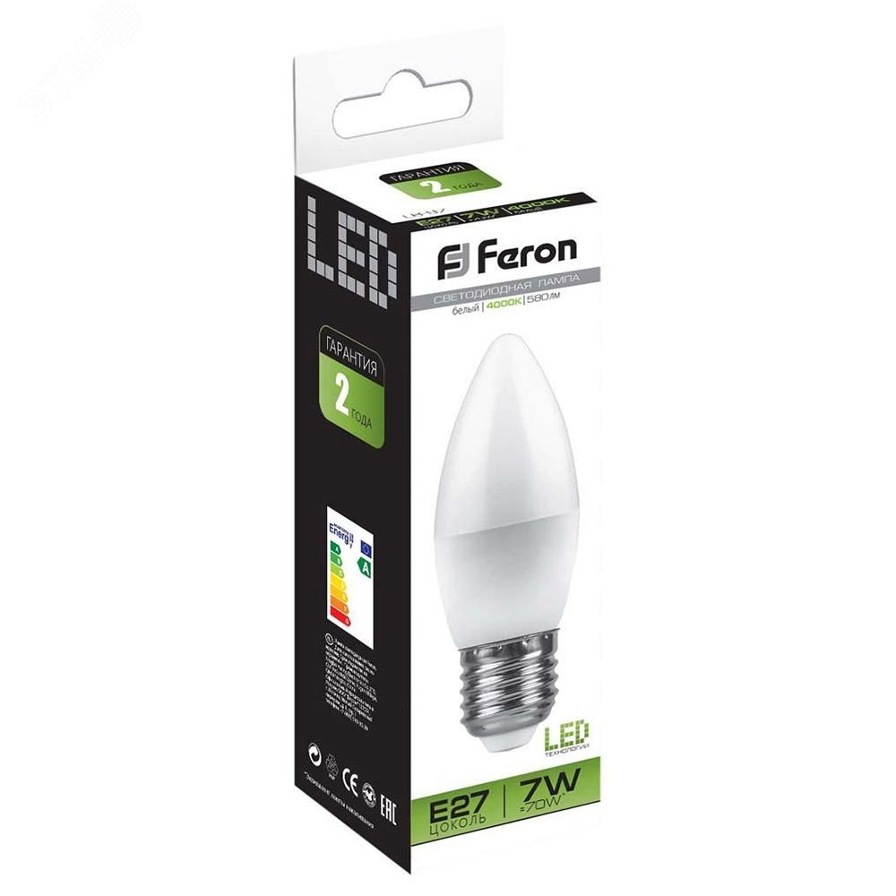 Лампа светодиодная LED 7вт Е27 белый матовая свеча 25759, Лампа светодиодная
