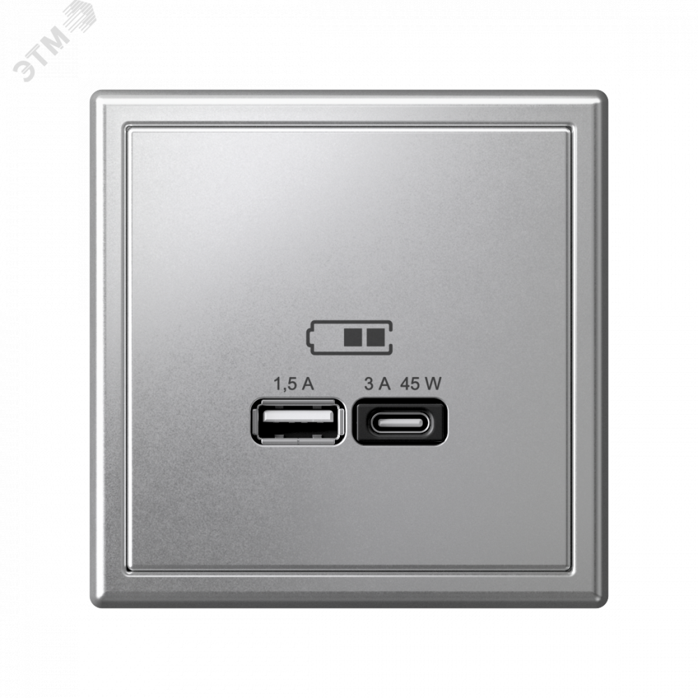 ARTGALLERY USB розетка A + тип-C 45Вт высокоскор.заряд. QC, PD, механизм, алюминий GAL000329, Выключатель и переключатель скрытого монтажа