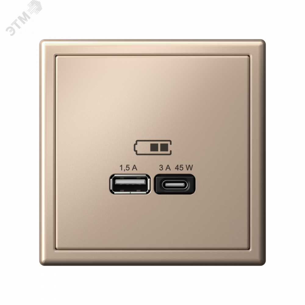 Описание ARTGALLERY USB розетка A + тип-C 45Вт высокоскор.заряд. QC, PD, механизм, песочный GAL001229