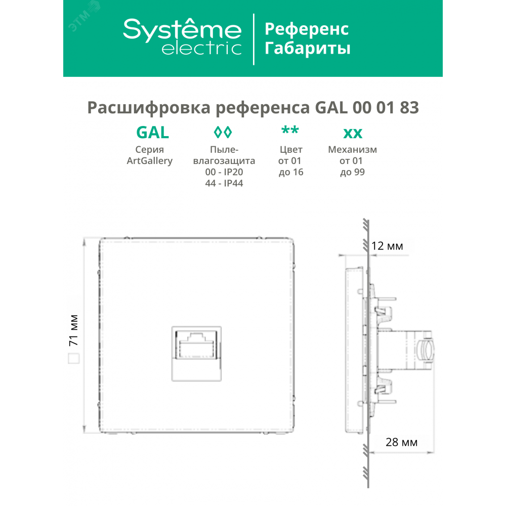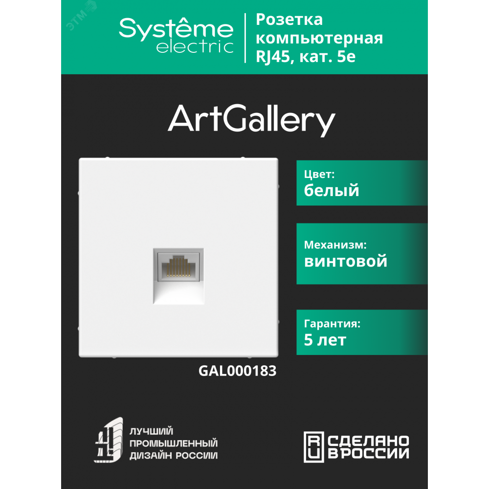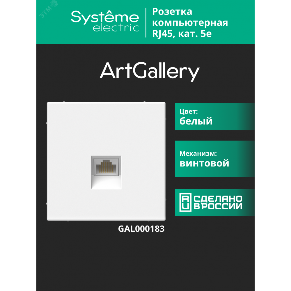 ARTGALLERY РОЗЕТКА компьютерная RJ45, кат. 5е, механизм, БЕЛЫЙ GAL000183, Розетка скрытого монтажа