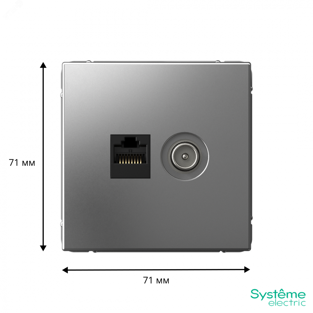 Механизм Systeme Electric серии ArtGallery в цвете сталь двойной розетки разъёмами RJ45 категория 5е и TV предназначен для удобного и быстрого подключения вашего компьютера и телевизора к соответствующим сетям. К изделиям в этом роскошном цвете приятно прикоснуться. Лицевые детали из качественного ABS-пластика, устойчивого к царапинам и УФ-излучению. Усиленные прямые монтажные лапки для лучшей фиксации механизма в монтажной коробке. Лучший промышленный дизайн (по итогам премии МИНПРОМТОРГ 2023).