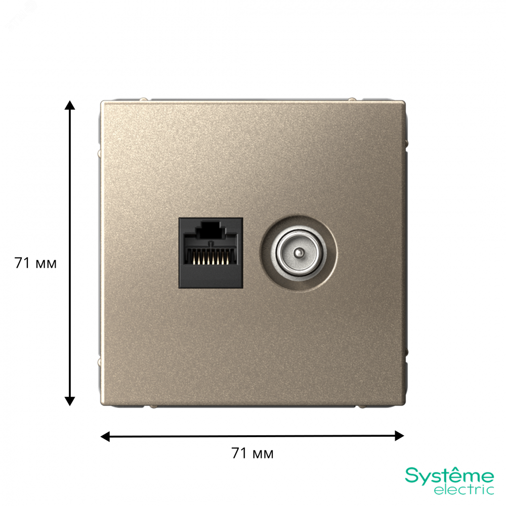Описание ARTGALLERY розетка двойная ТВ + компьютерная RJ45, кат. 5Е, шампань GAL000589
