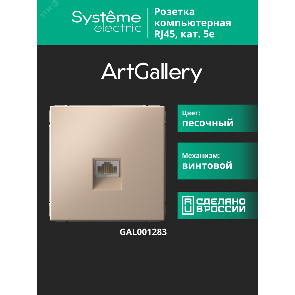 ARTGALLERY РОЗЕТКА компьютерная RJ45, кат. 5е, механизм, ПЕСОЧНЫЙ GAL001283, Розетка скрытого монтажа